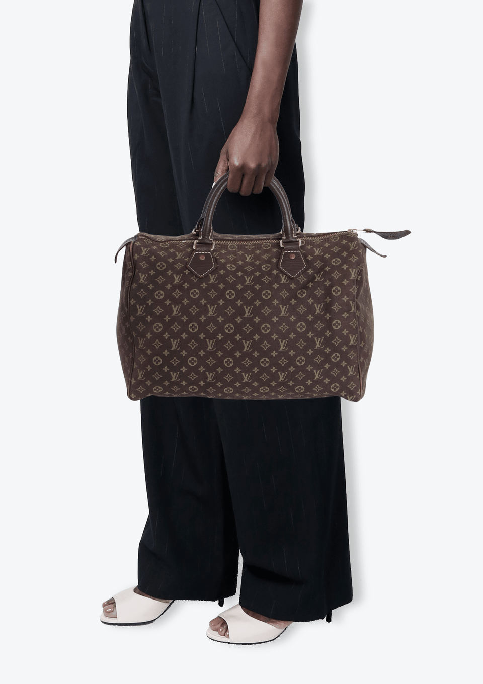 - Canvas Mini Lin marrom e couro calfskin marrom;