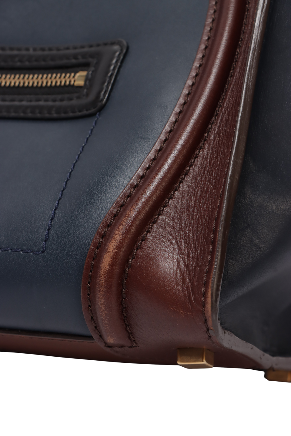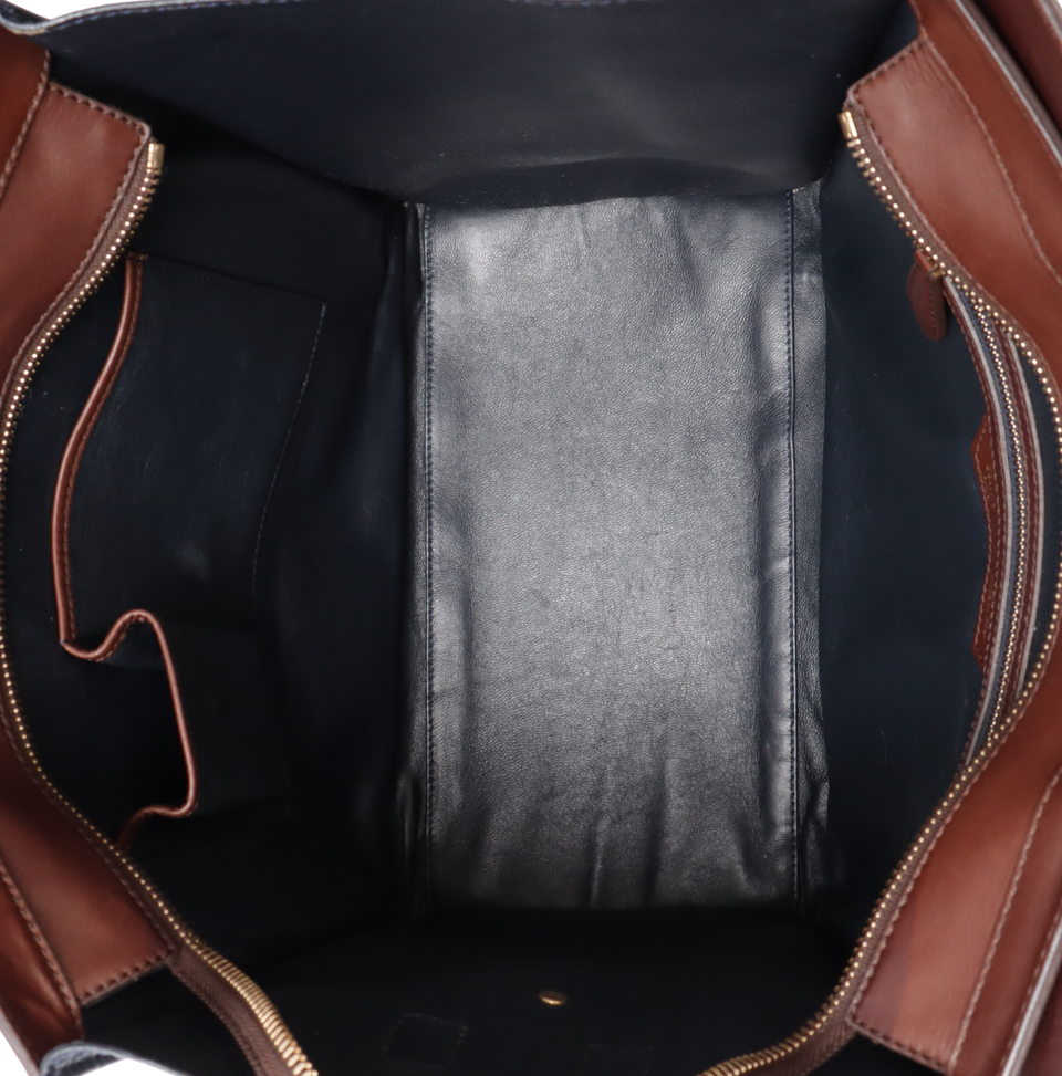 Regular. Apresenta notáveis desgastes pelo couro nos acabamentos inferiores, severa deformaçāo na lateral direita, pequenas manchas e marcas de uso pela parte frontal, especialmente ao lado esquerdo bolso, leves descolorações e marcas de uso pelas ferragens e leves manchas esbranquiçadas pela parte interna.