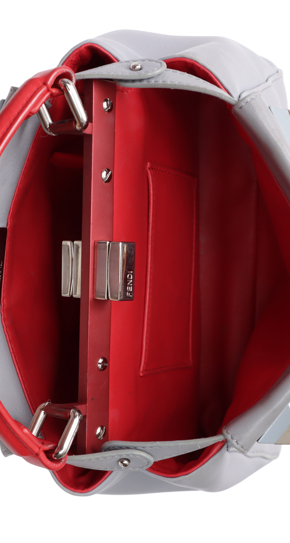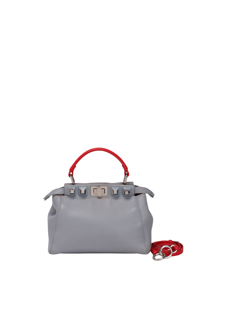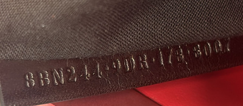 Descrição do Material: Couro calfskin cinza com detalhes em vermelho