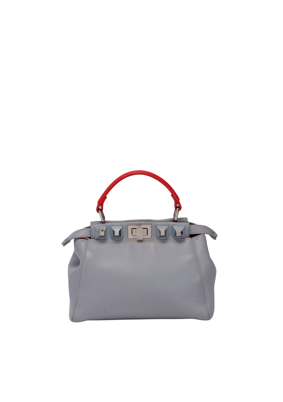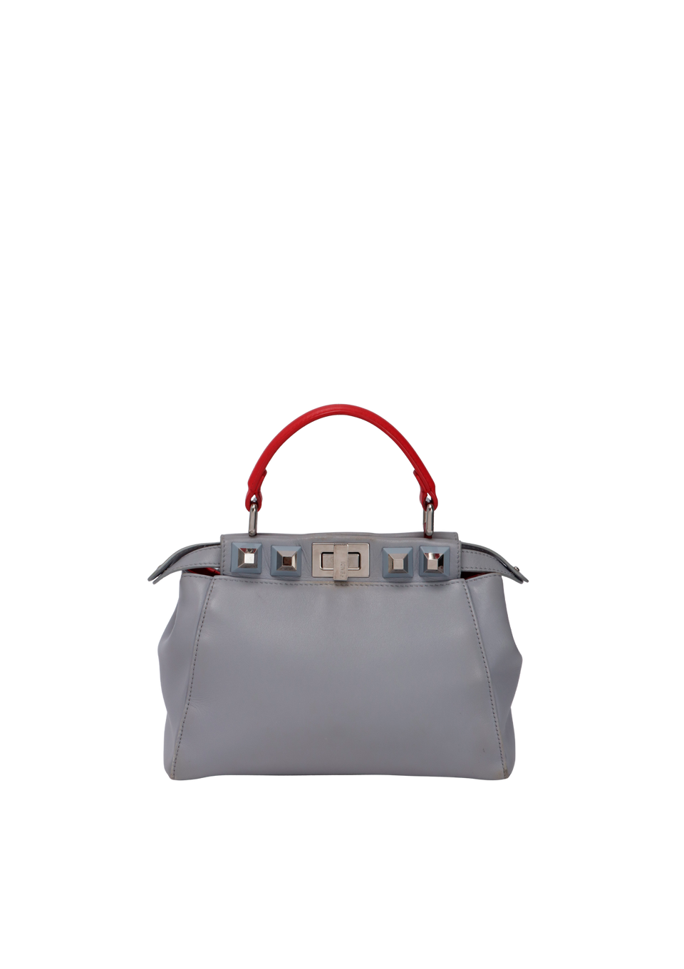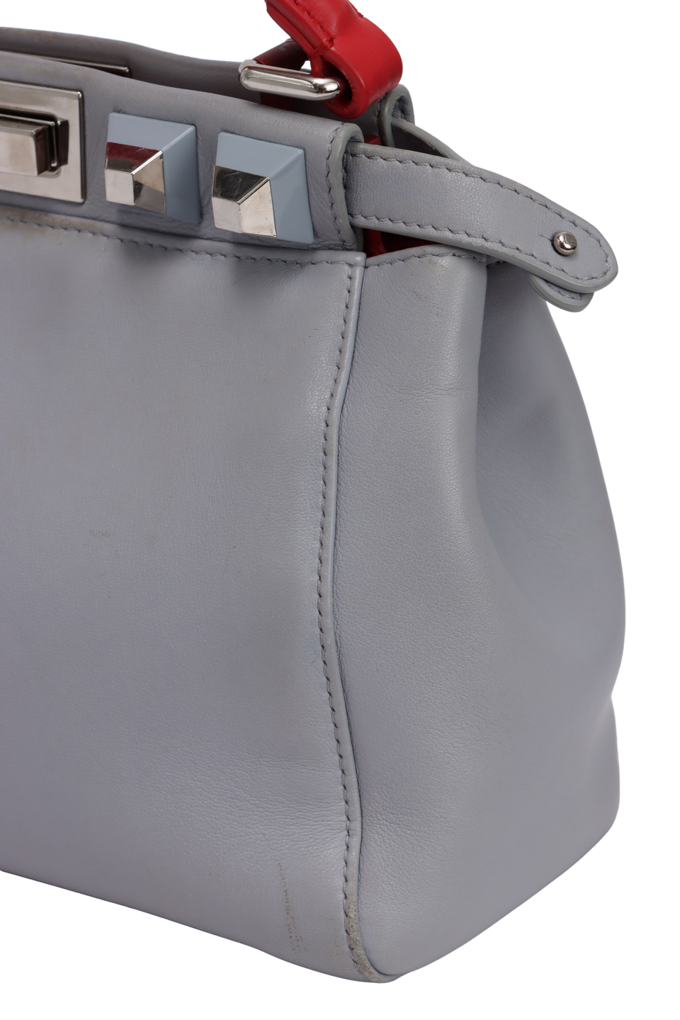 Descrição do Material: Couro calfskin cinza com detalhes em vermelho