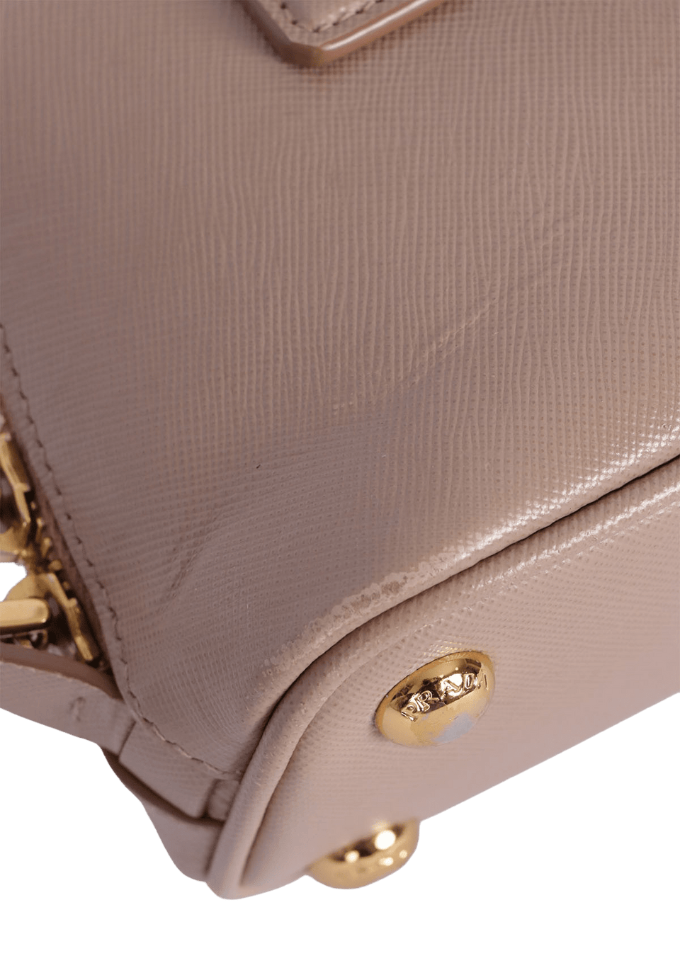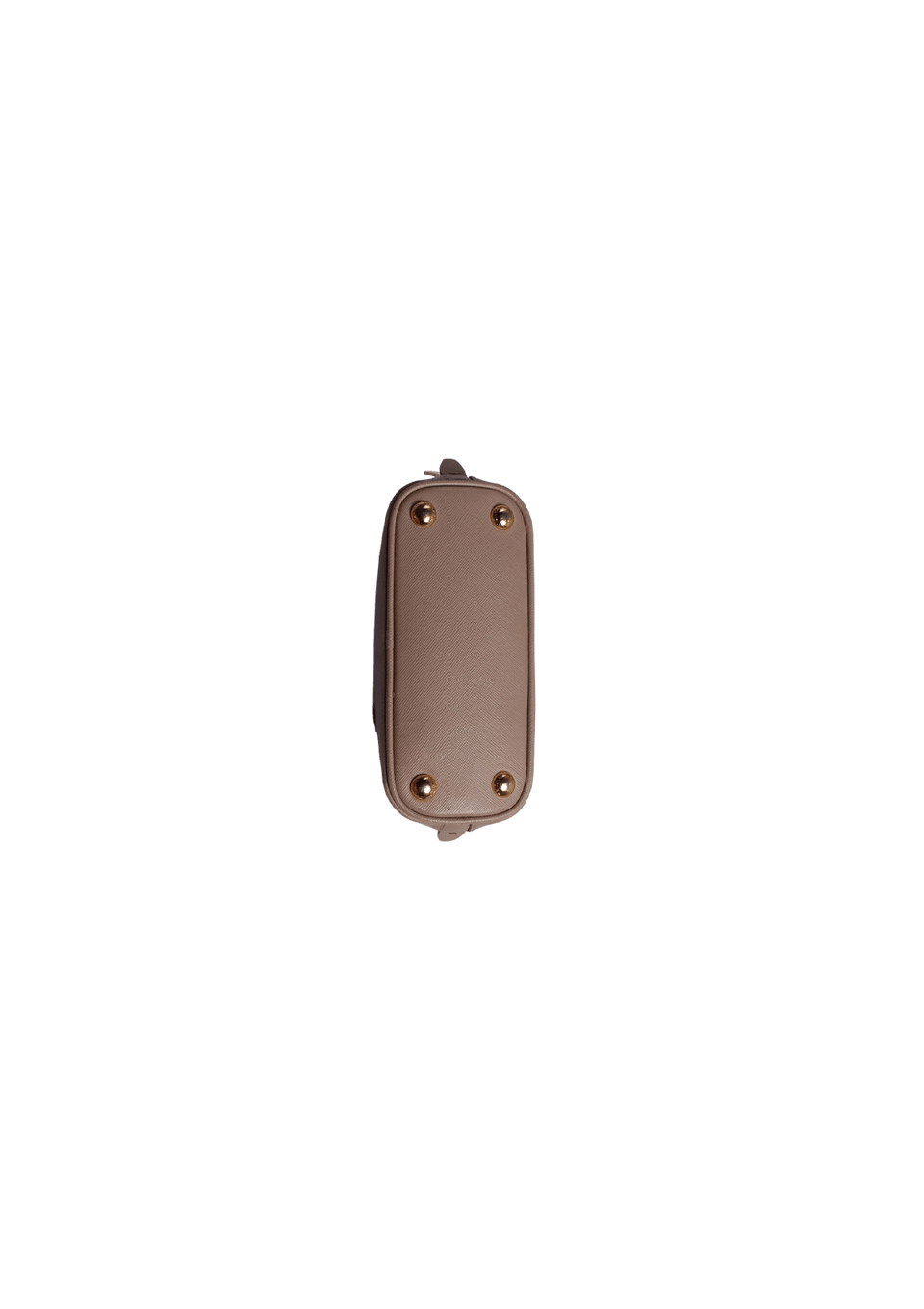Condição: Bom, com aparência de usado. Apresenta leves marcas de uso e desgastes no couro, principalmente nos cantos inferiores da bolsa e nos quatro cantos da base, leves desgastes e descolorações nas ferragens, especialmente da base e nos ganchos da alça longa, pequeno desgaste no couro do acabamento esquerdo da alça de mão frontal e leves marcas de uso no forro