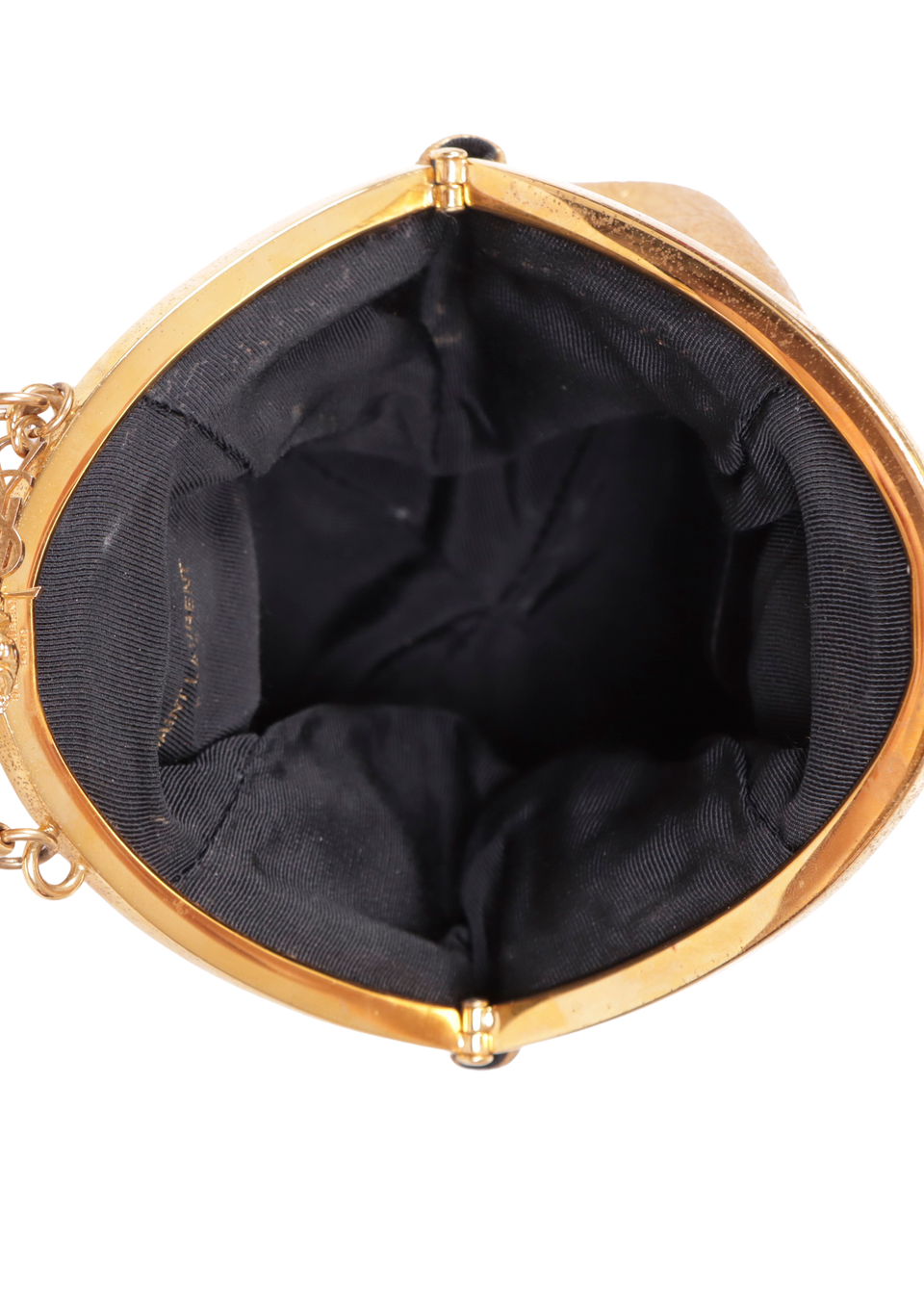 Regular. Apresenta severas oxidações, marcas de uso e descolorações nas ferragens superiores, alça, no charm da logo e no fecho, notáveis deformidades pela estrutura, especialmente do lado esquerdo inferior frontal e do lado direito da base, consideráveis desgastes pelo couro, principalmente nos cantos da base, nas extremidades frontais e de trás e leves manchas de uso pelo forro.