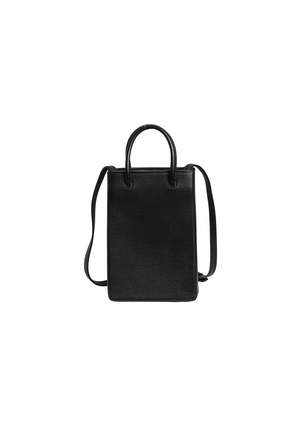 • Couro calfskin com textura e alças de couro lambskin pretos;