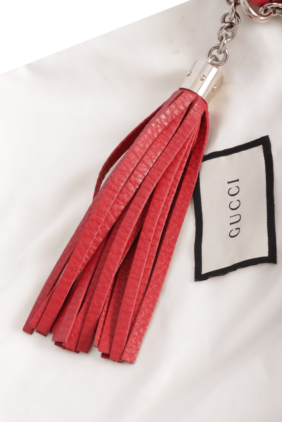 Condição: Bom, com aparência de usado. Apresenta pequenas fissuras nas selagens dos acabamentos da alça, leve perda da estrutura original da bolsa, leves desgastes nas ferragens e leves marcas de uso e manchas avermelhadas por todo o forro.