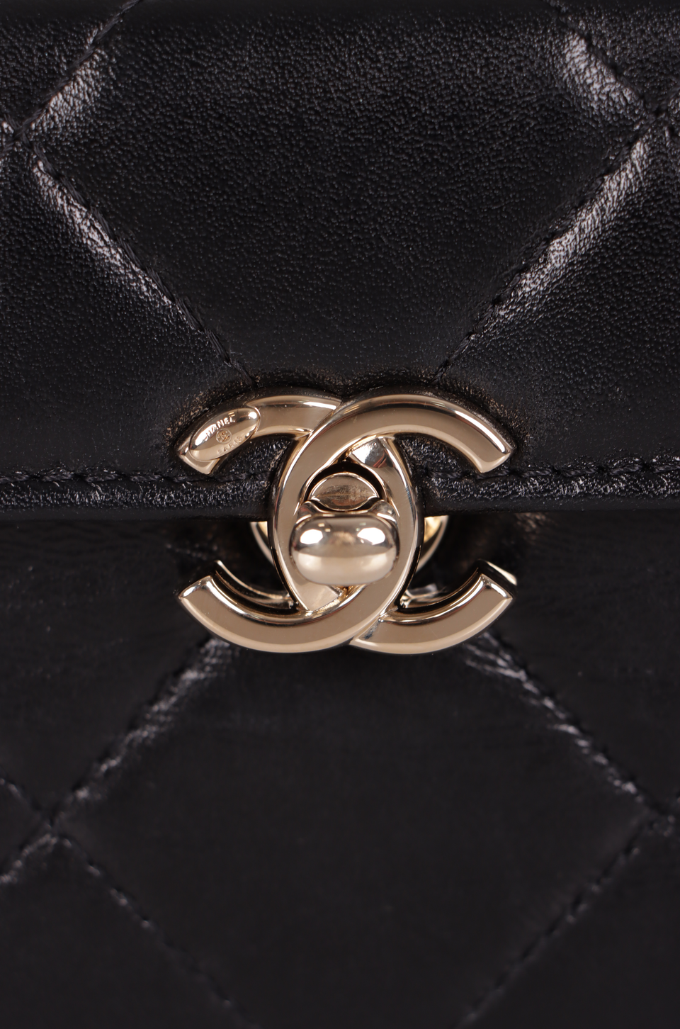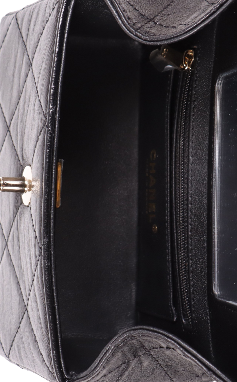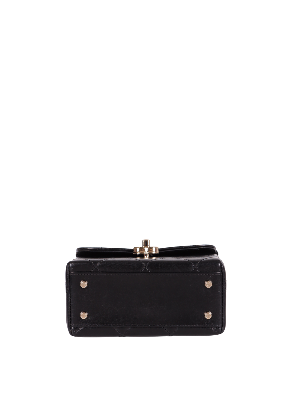 Descrição do Material: Couro lambskin preto com acabamento matelassê