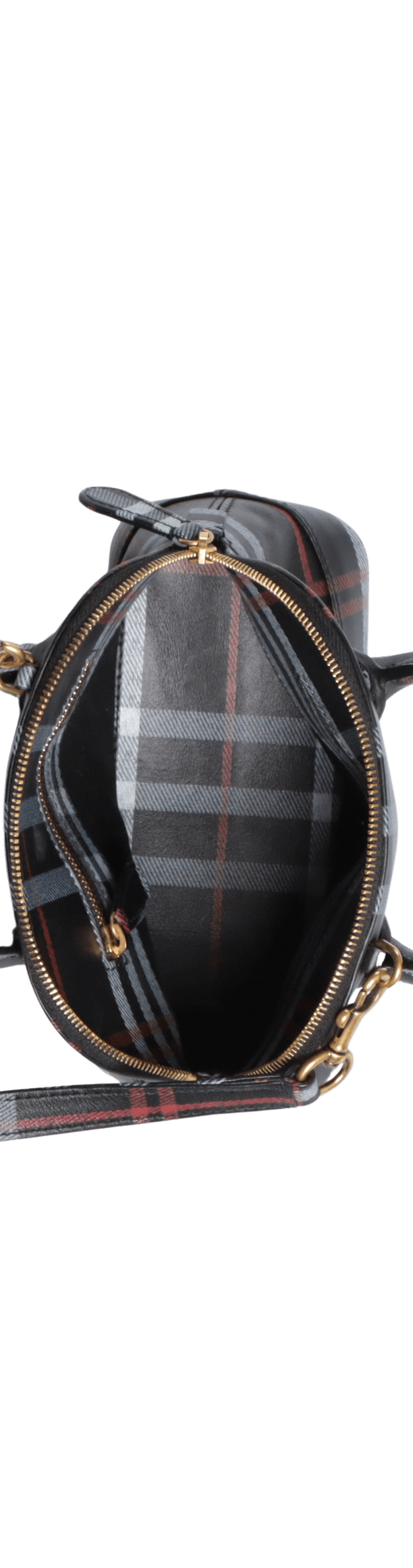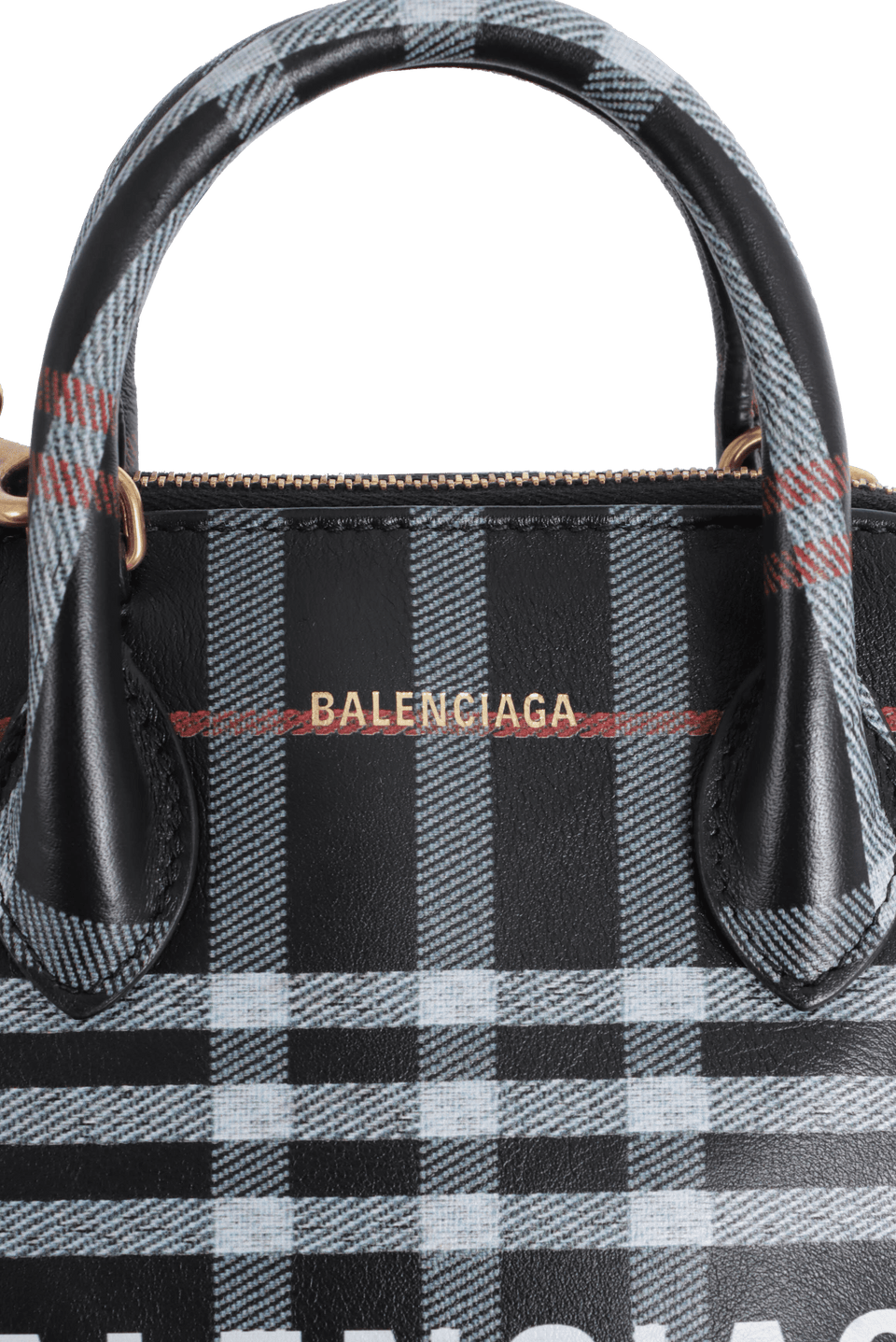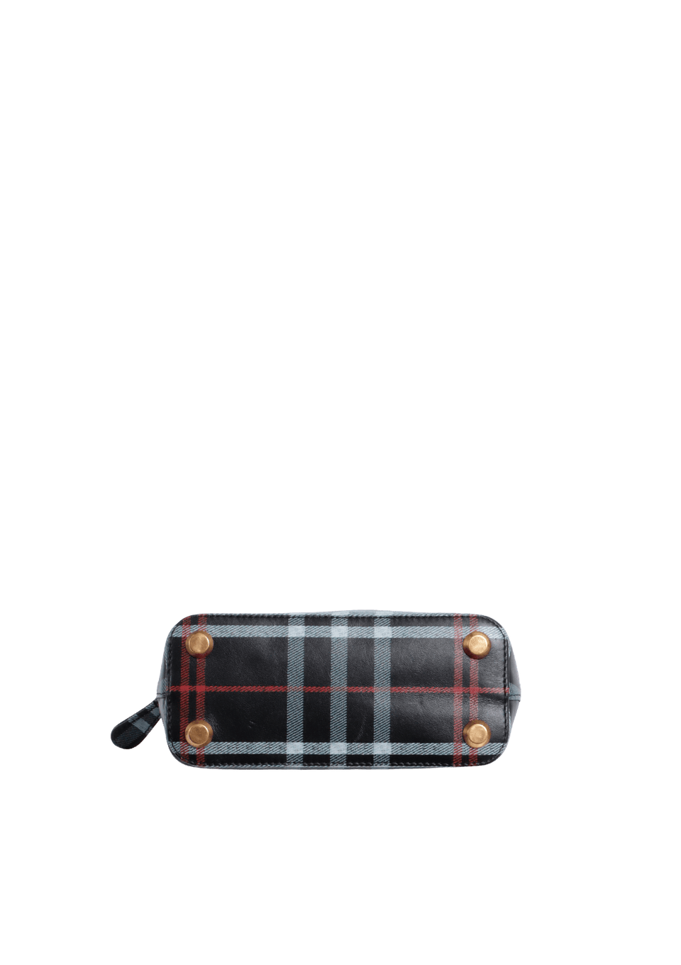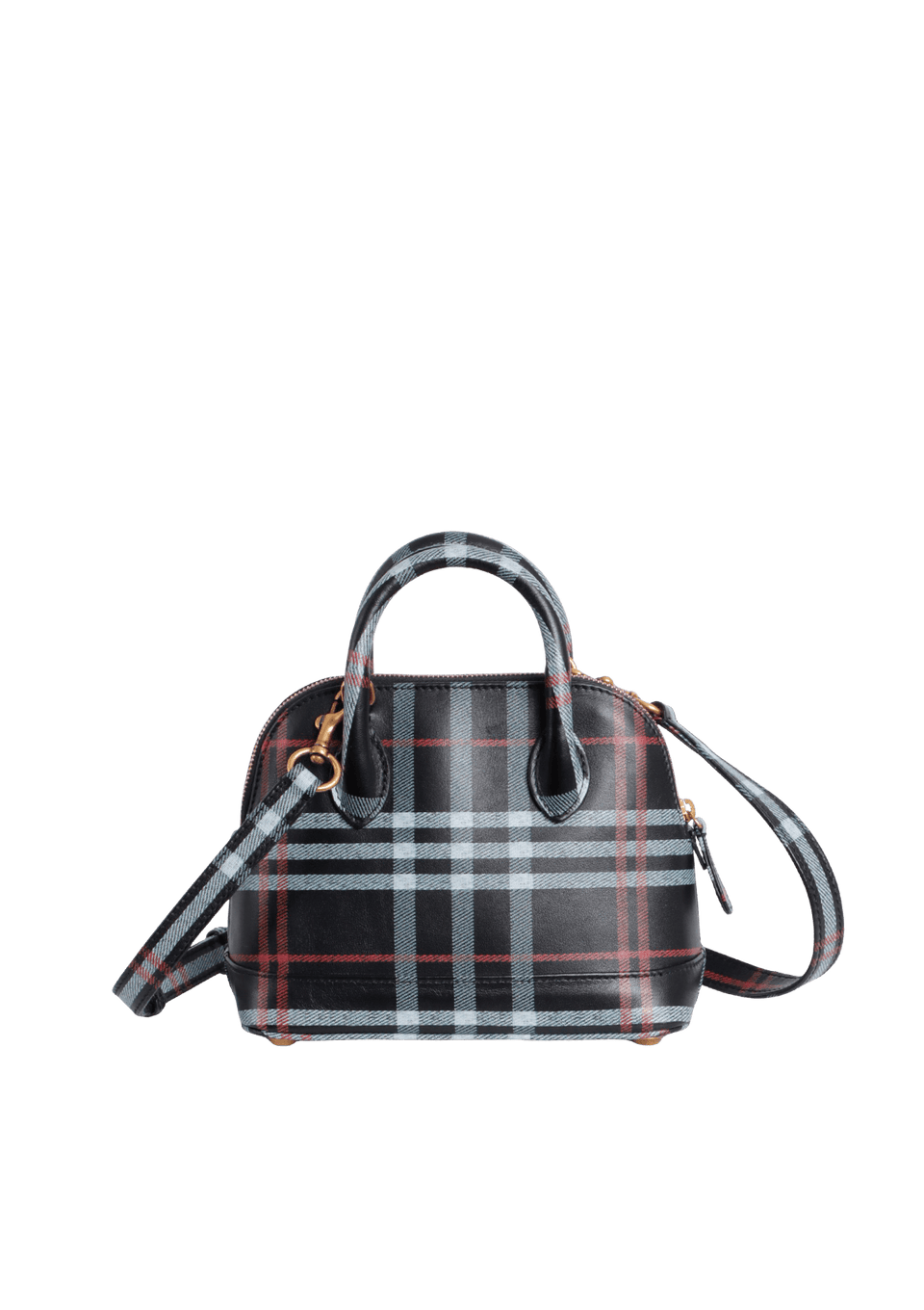 - Canvas estampado em xadrez tartan preto, branco e vermelho;