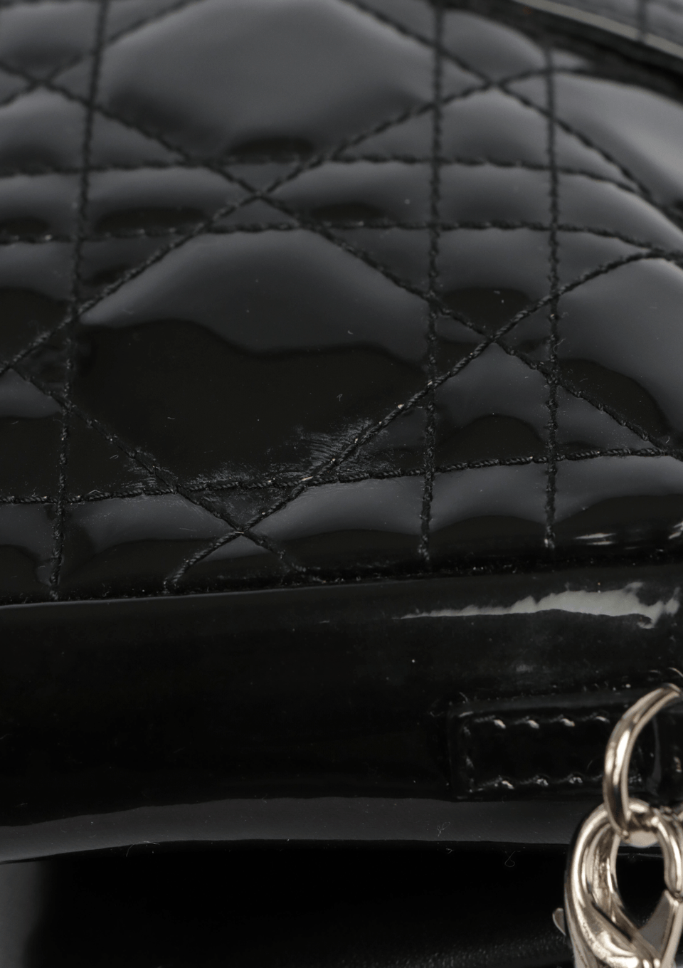 - Couro envernizado preto com padronagem Cannage;
