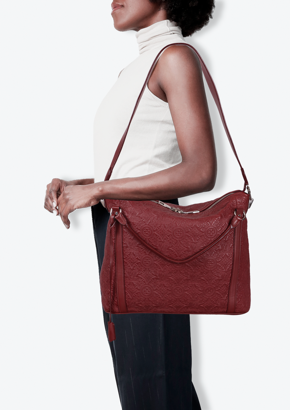 Descrição do Material: Couro calfskin vermelho com acabamento Monogram Antheia