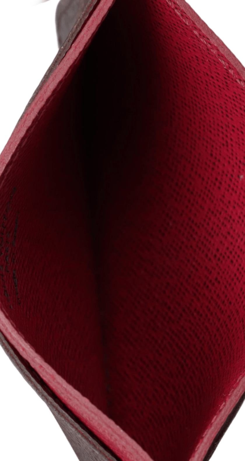 Descrição do Material: Canvas Monogram marrom com detalhes em couro calfskin rosa
