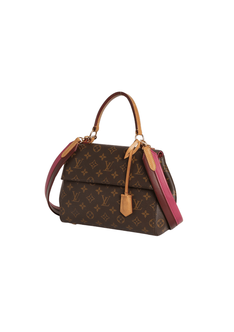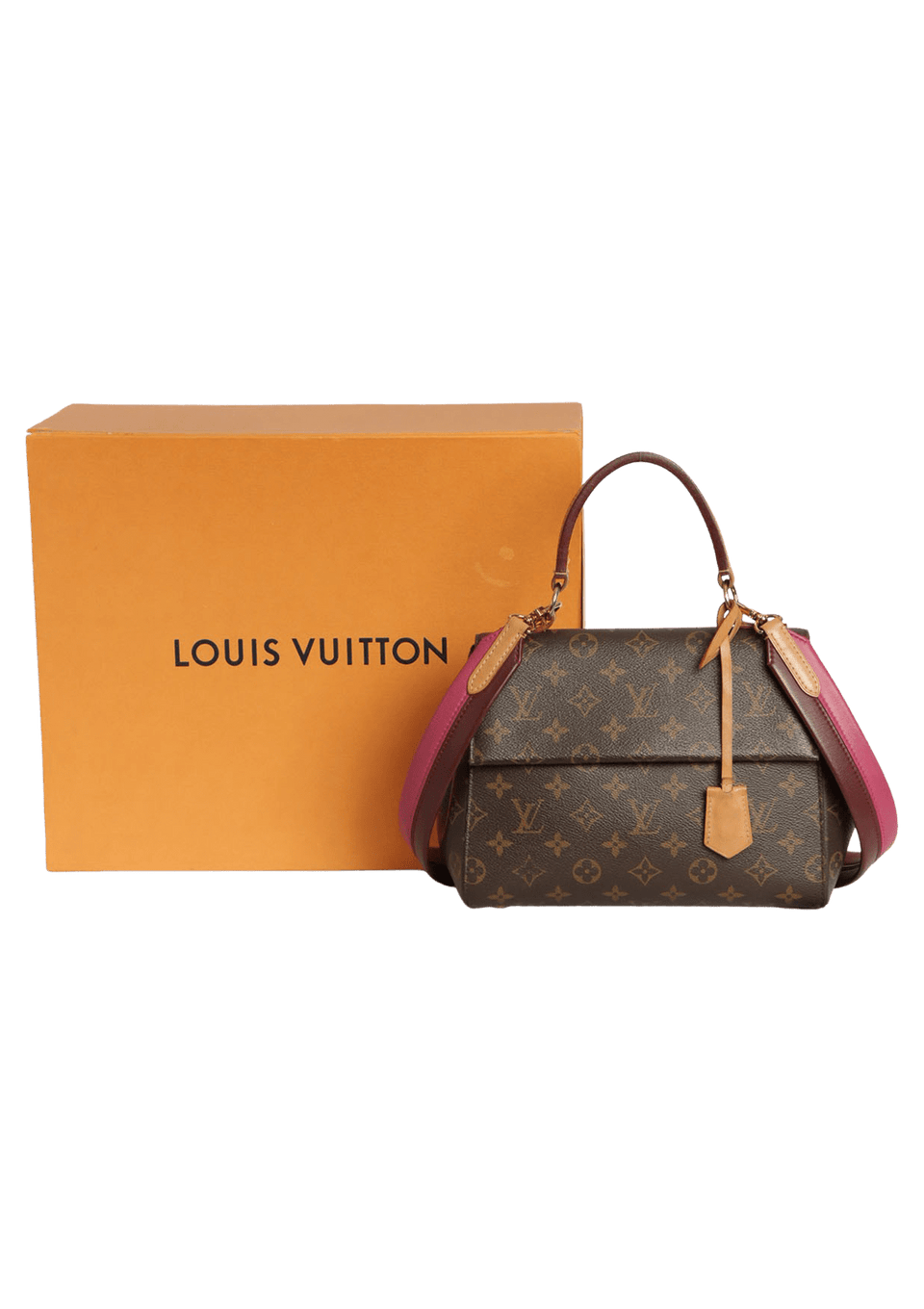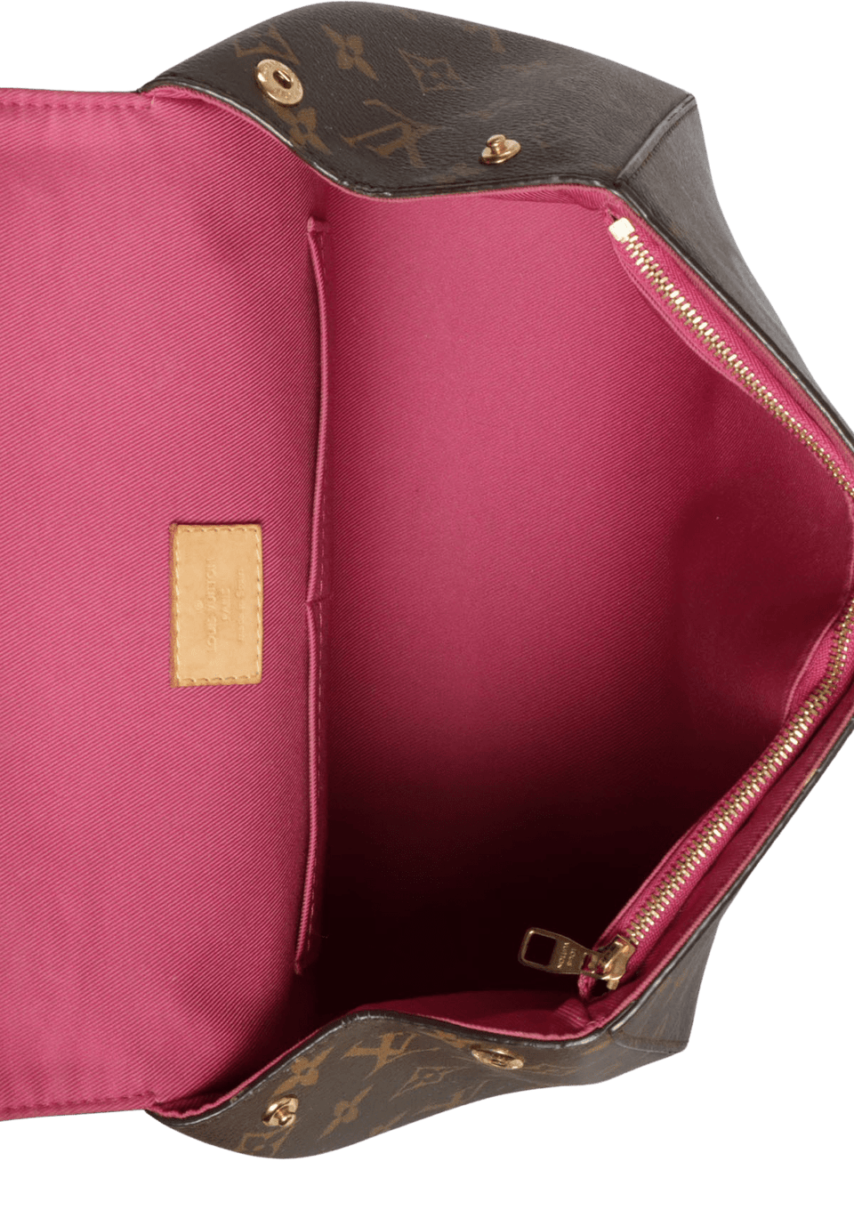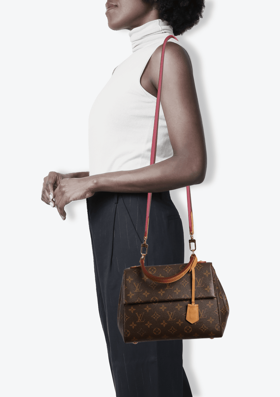 - Canvas Monogram marrom, couro vachetta e couro calfskin nas cores bordô e rosa;