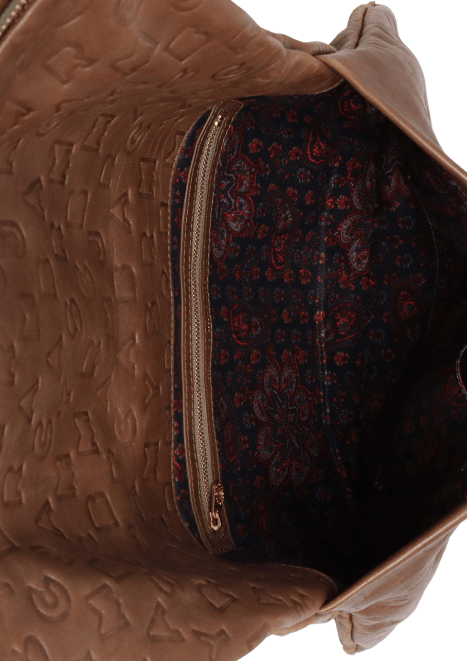 - Couro marrom com relevo;