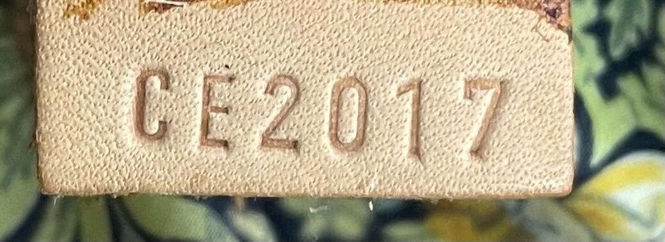 Condição: Regular. Apresenta severas manchas escurecidas no couro vachetta, principalmente das alças, notáveis desgastes e descolorações das ferragens, especialmente dos fechos e puxadores dos cursores, consideráveis manchas amareladas e escurecidas nos acabamentos dos tecidos, severas marcas e manchas de uso por todo o forro e notável odor característico de item guardado.