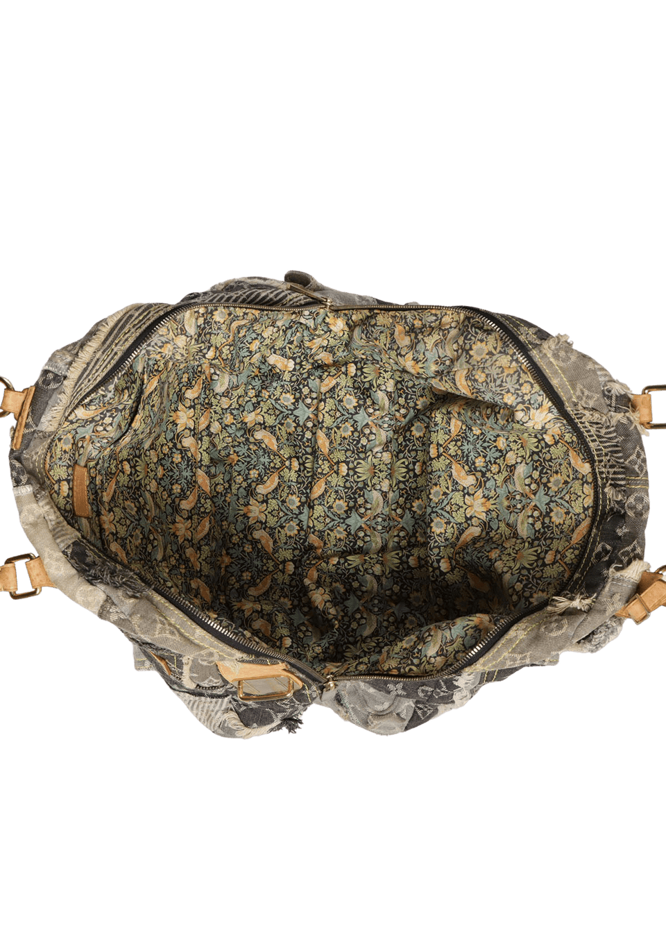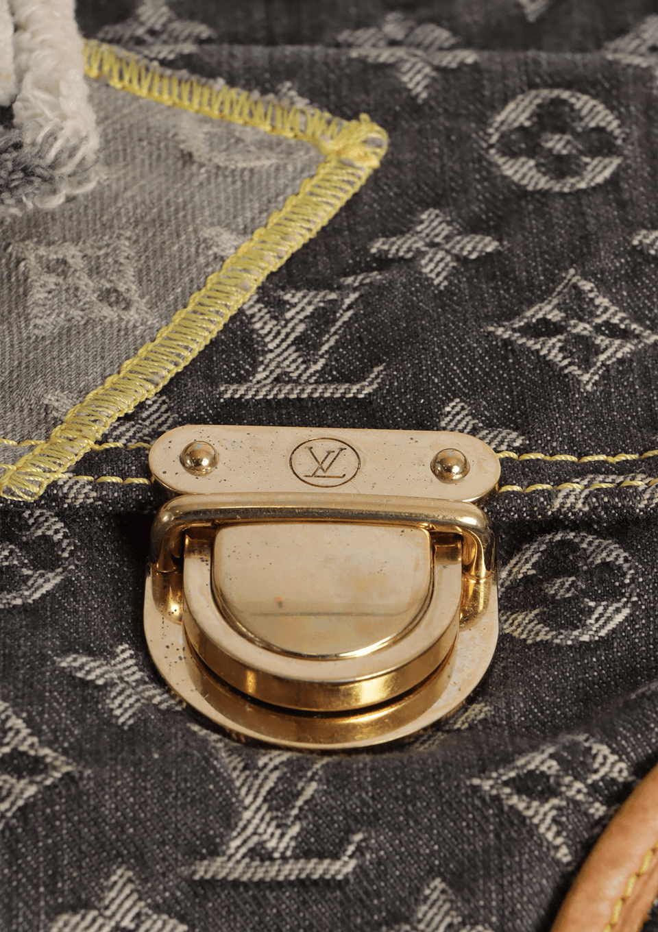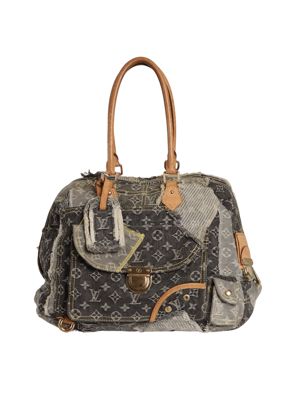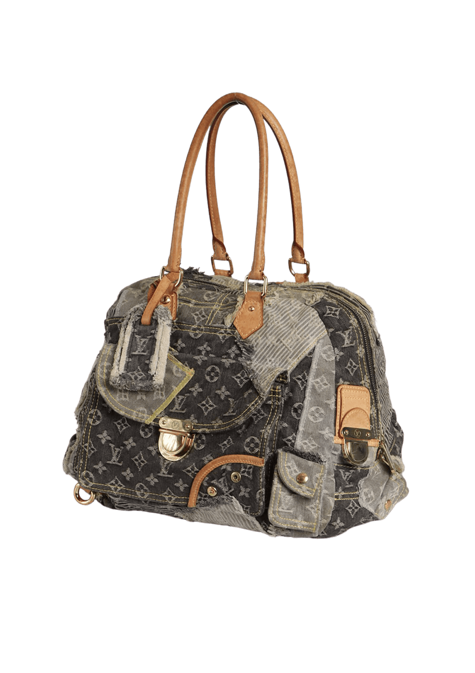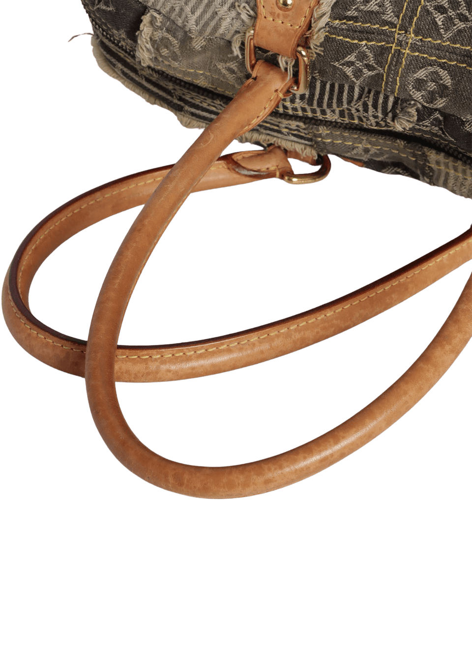 - Canvas Denim Patchwork cinza e azul com detalhes em Monogram e couro vachetta;