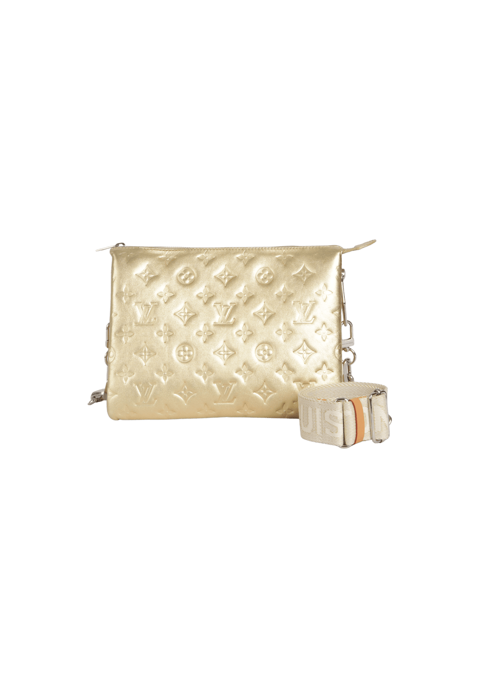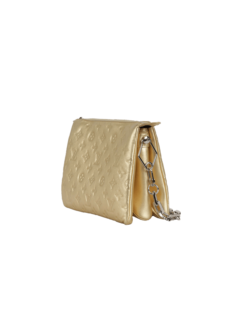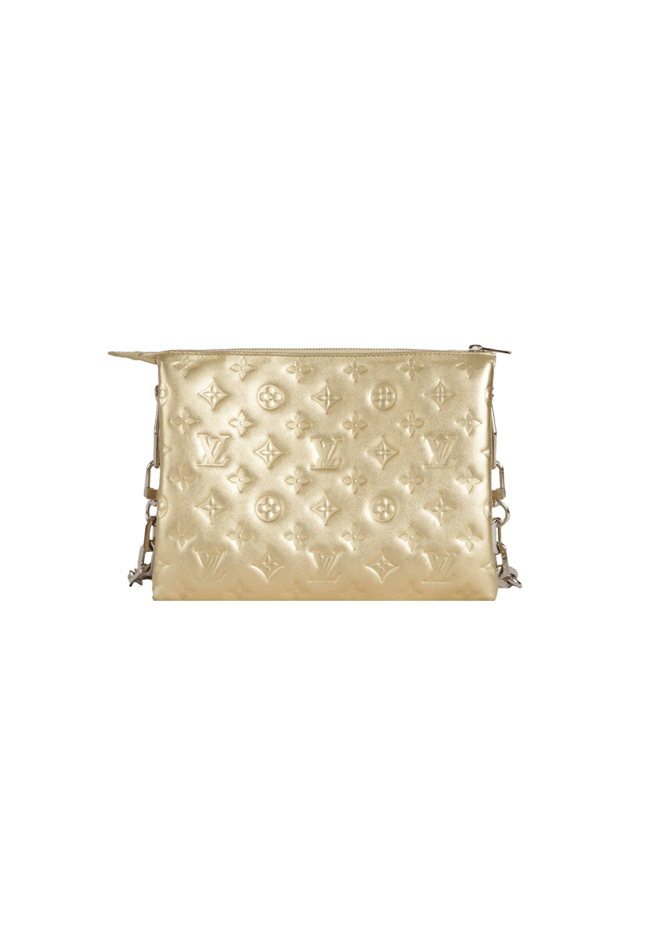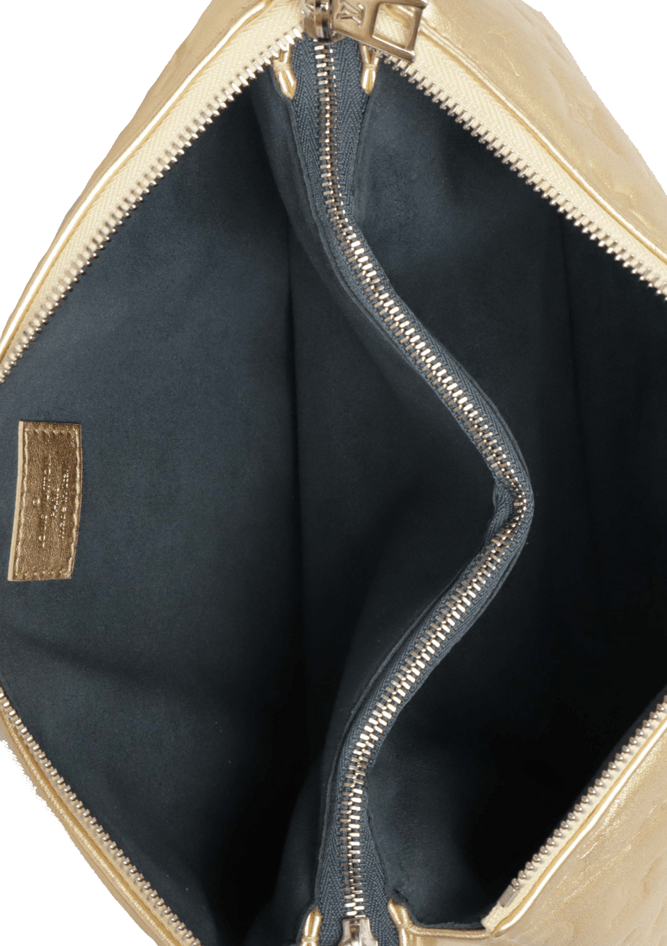 - Couro lambskin dourado com acabamentos Monogram e Empreinte;