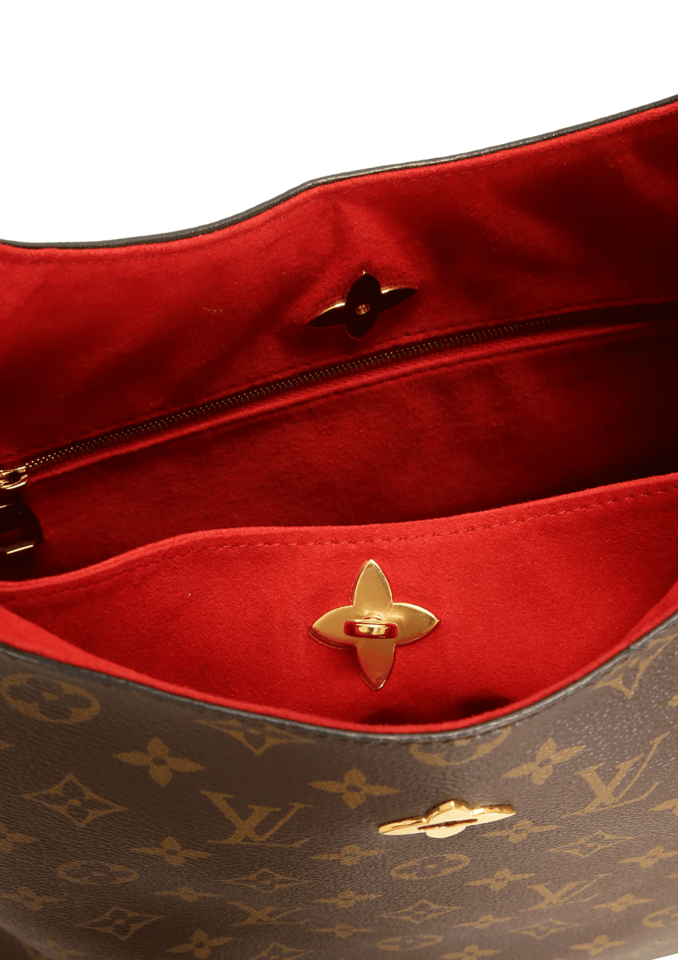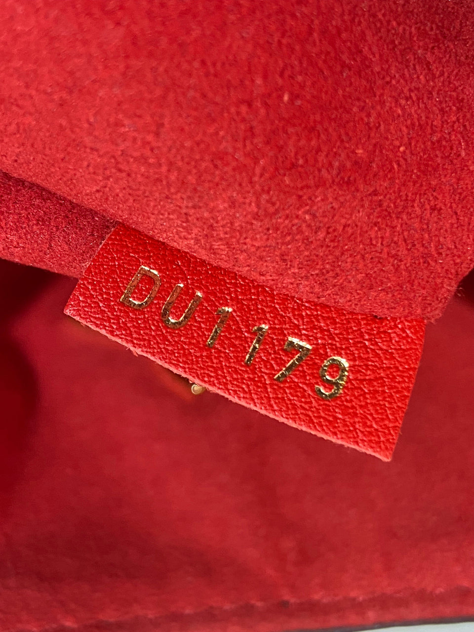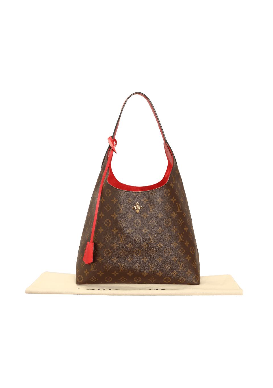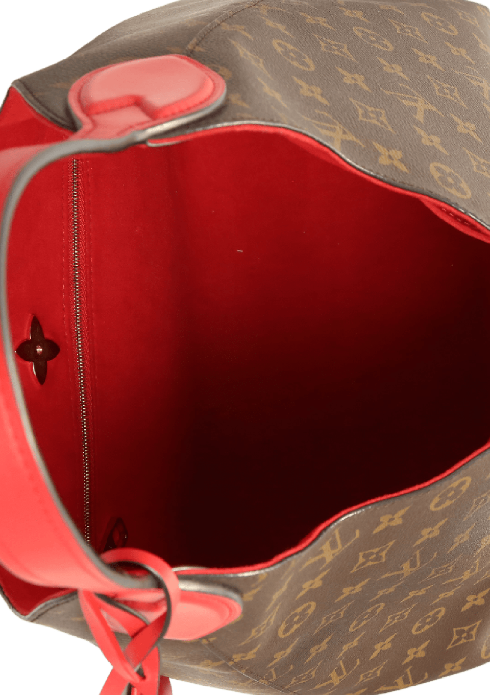 - Canvas Monogram marrom e couro calfskin vermelho;