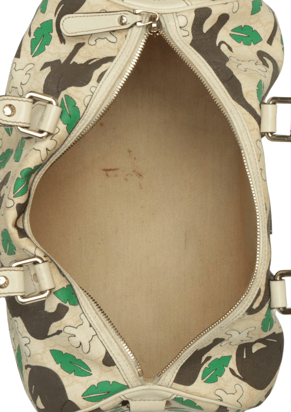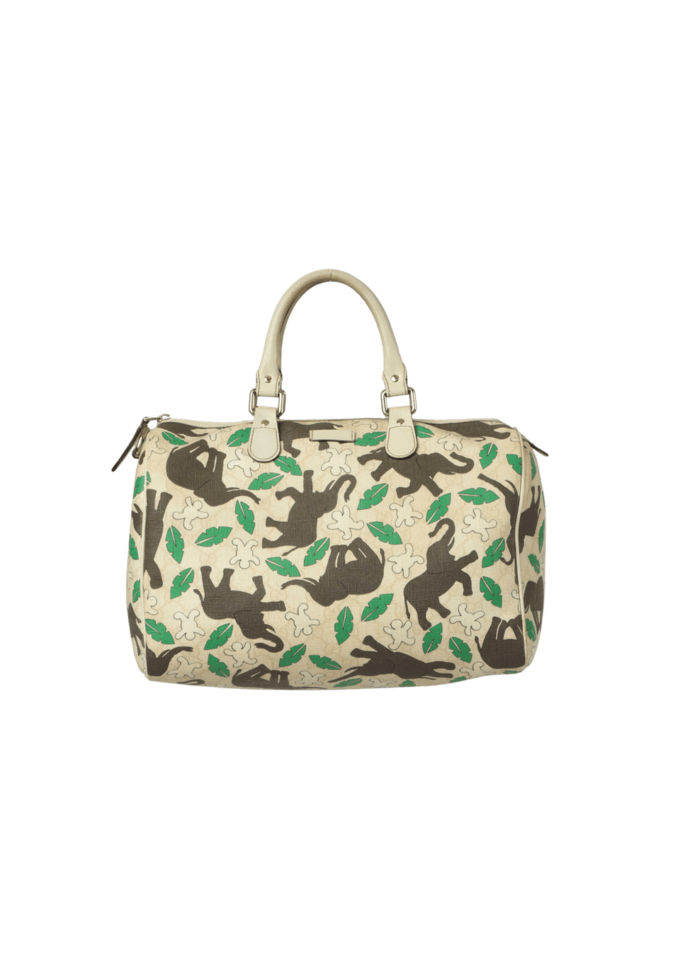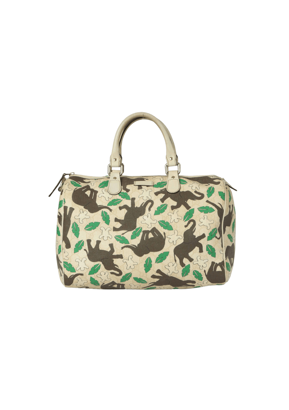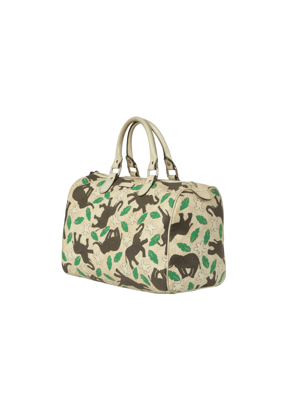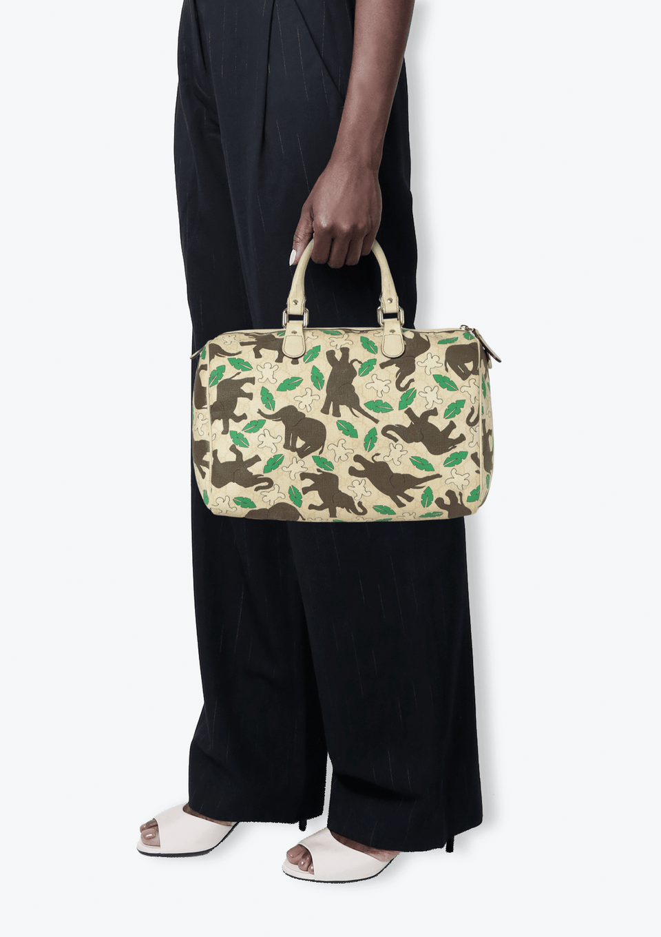 - Canvas GG bege, marrom e verde inspirado no livro de Michael Robert "Snowman In Africa" e couro off white;