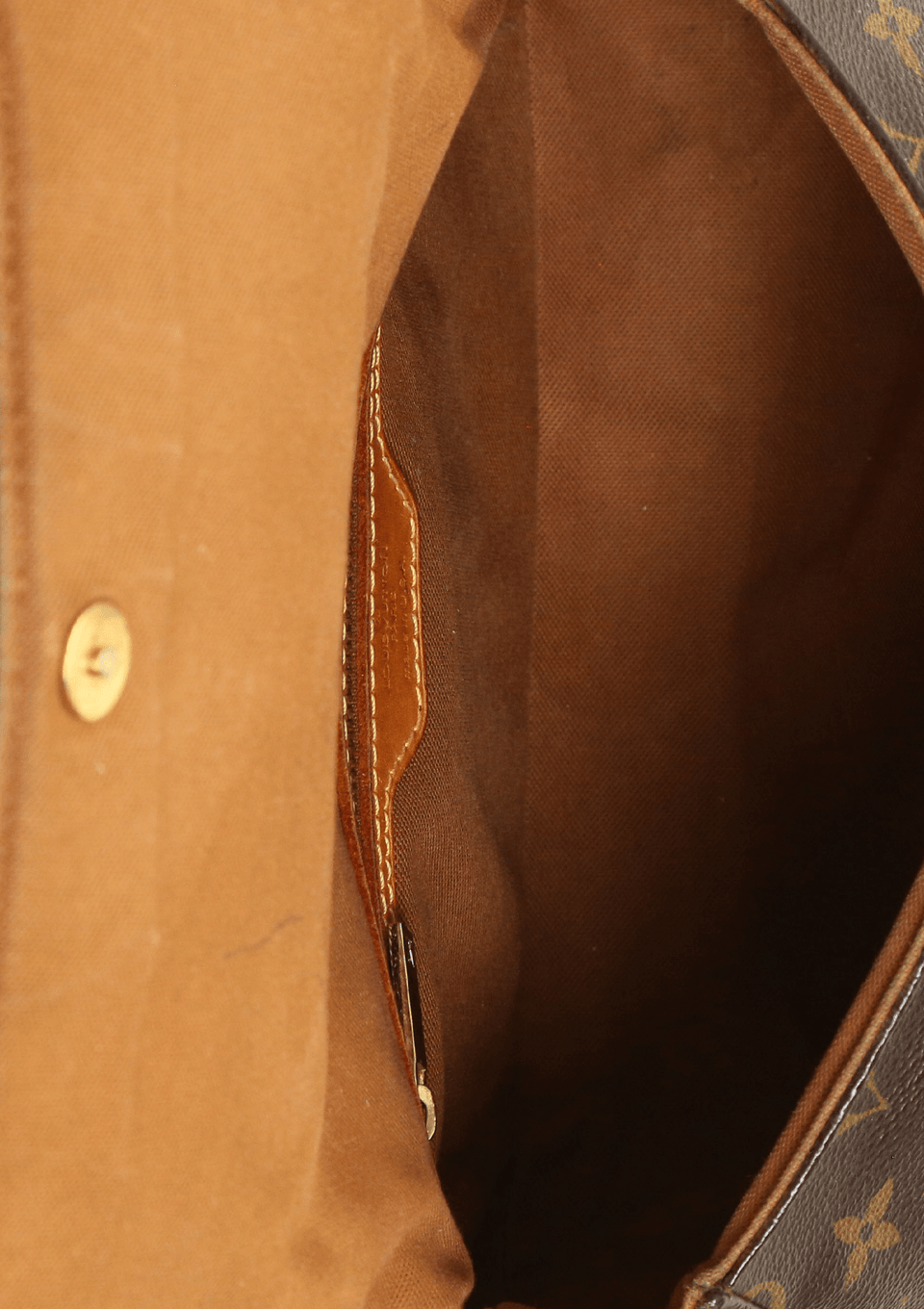 Condição: Produto bom, com aparência de usado. Apresenta severo escurecimento do couro, marcas esbranquiçadas e riscos no verso da aba e no forro, ferragens oxidadas e odor característico de item guardado.