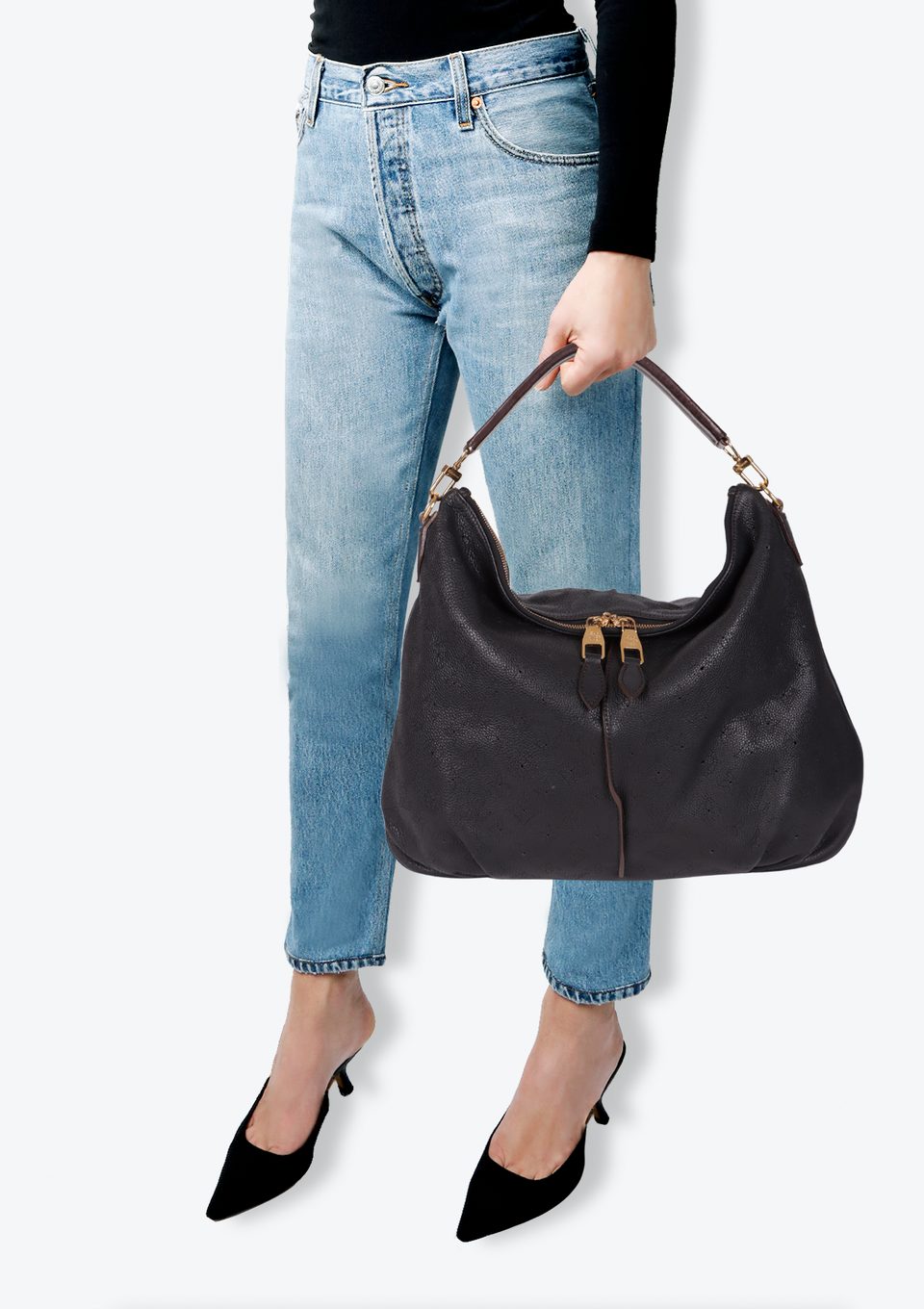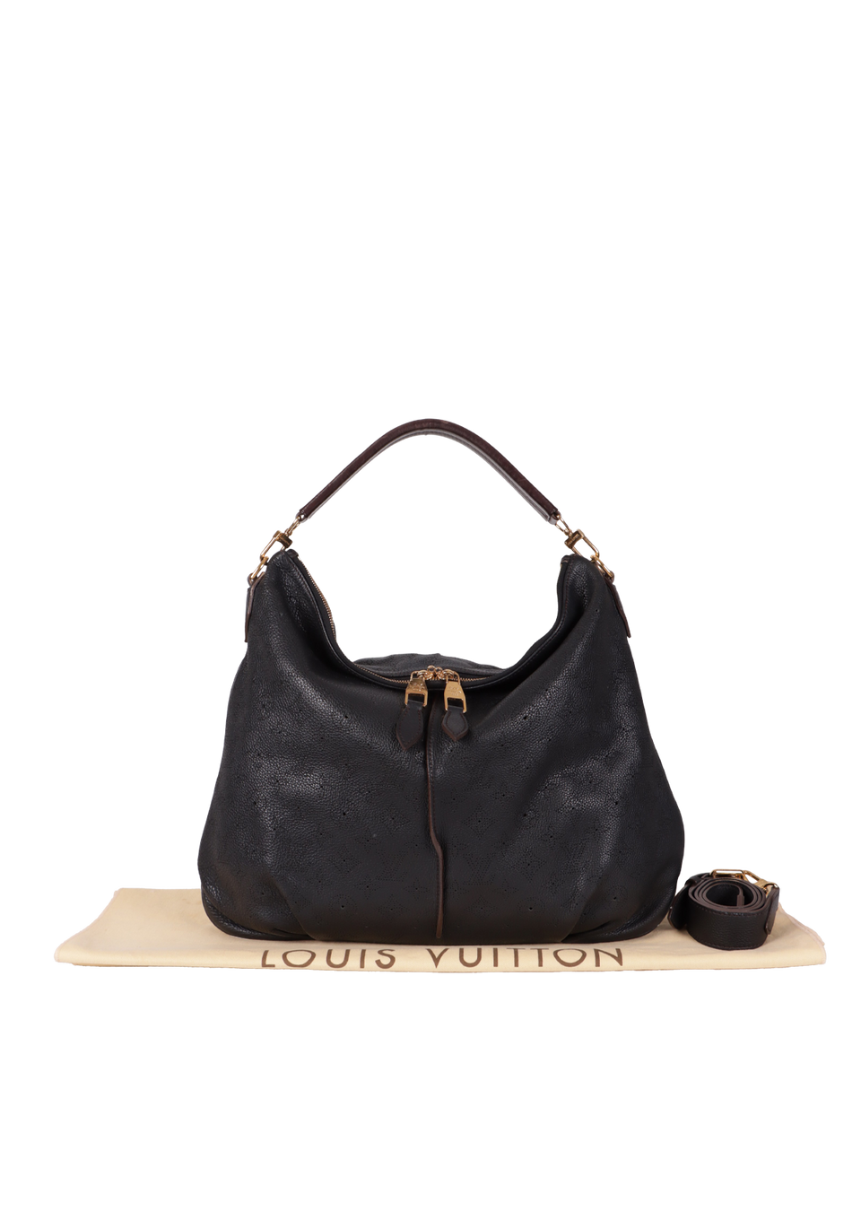 Descrição do Material: Couro calfskin preto com acabamento Monogram Mahina