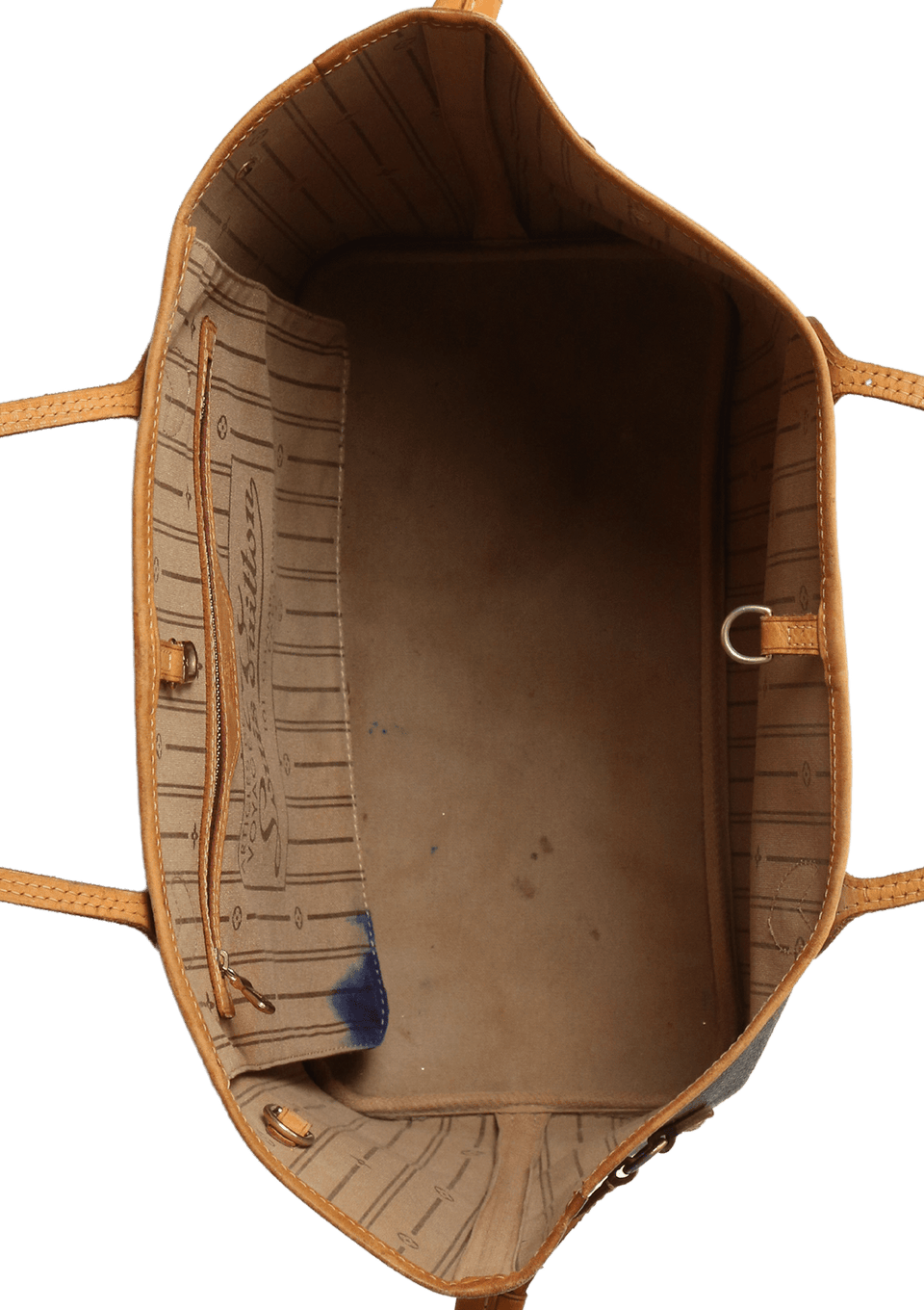 Condição: Muito Bom, com aparência de seminovo. Apresenta desgastes nos cantos da base, acabamentos superiores e alças, manchas de uso escurecidas pelo couro, manchas no forro e riscos e oxidações nas ferragens.