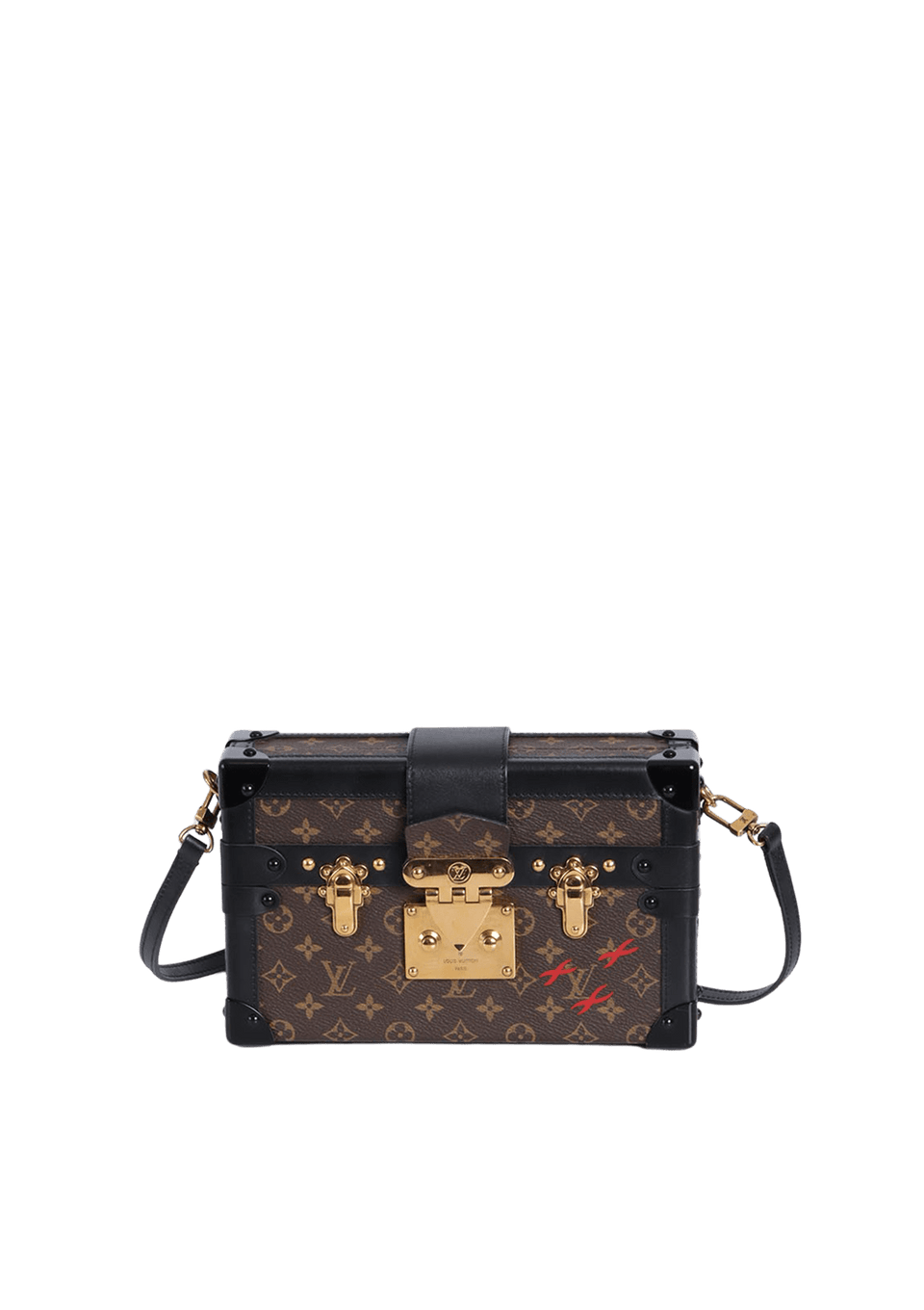 - Canvas Monogram marrom e detalhes em couro calfskin preto;