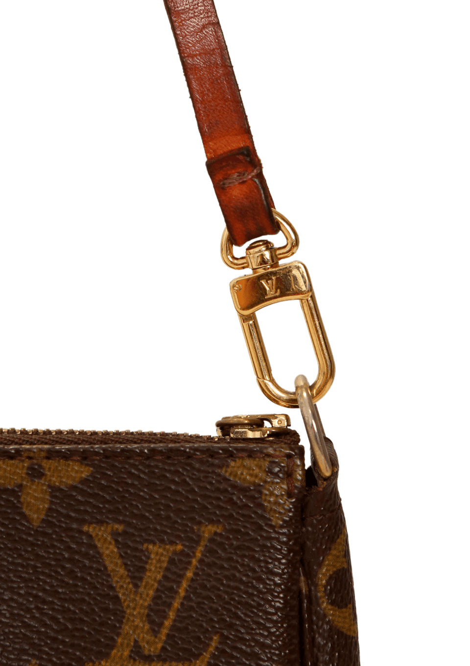 Condição: Bom, com aparência de usado. Apresenta couro severamente escurecido, ferragens oxidadas e desgastadas, manchas na parte interna e na dust bag.