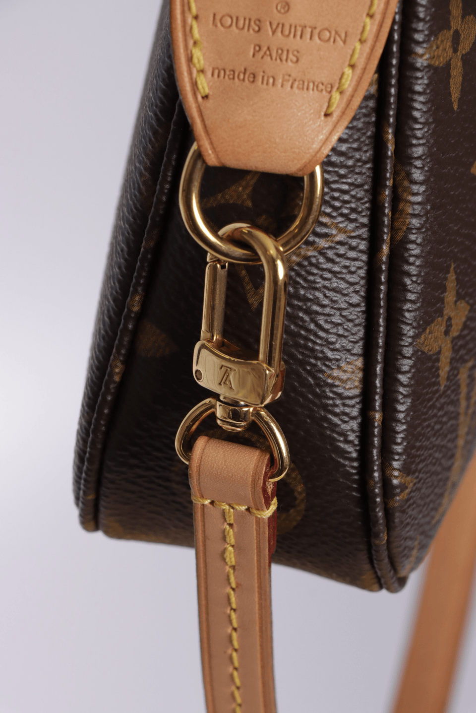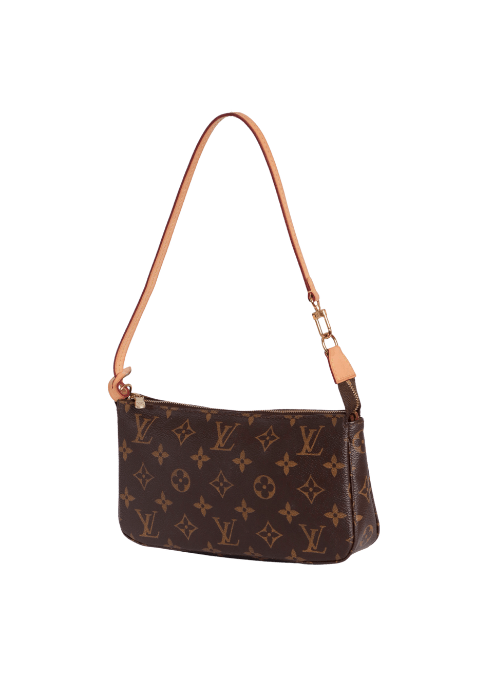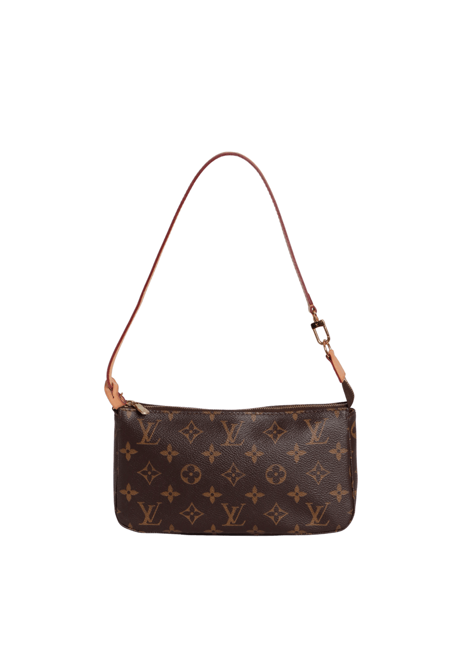 - Canvas Monogram marrom e detalhes em couro vachetta;