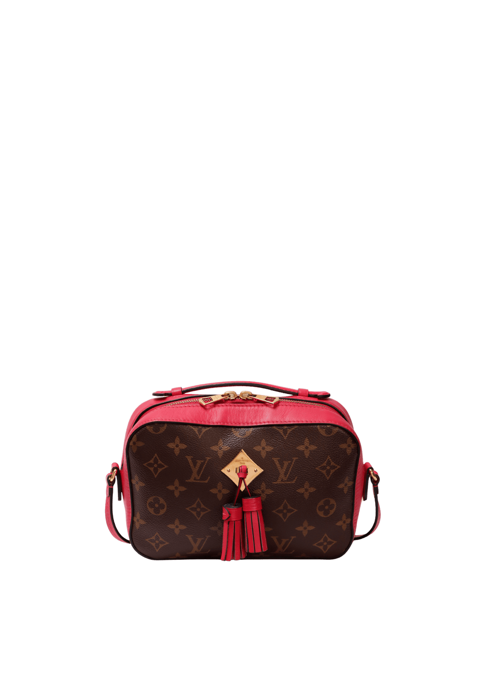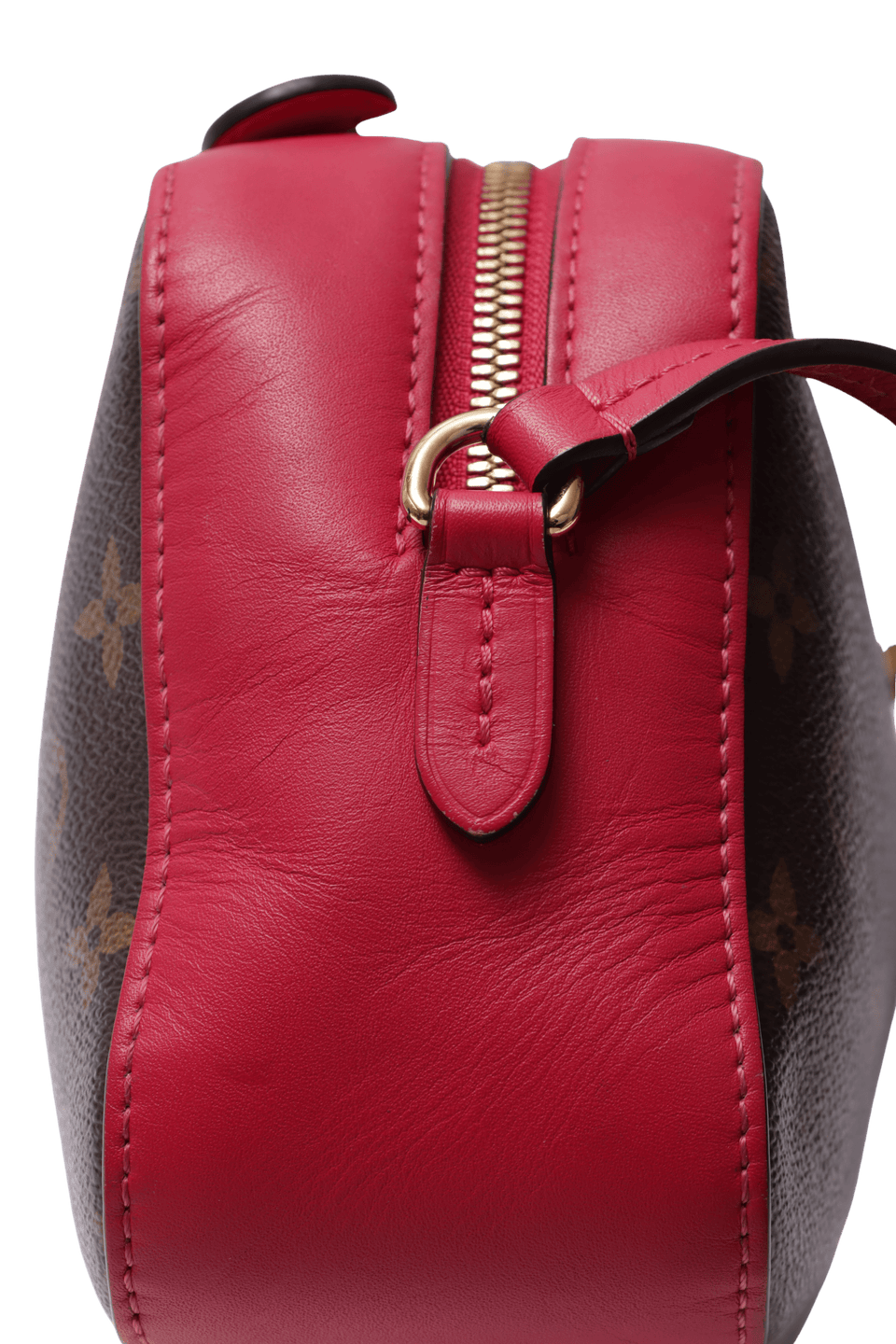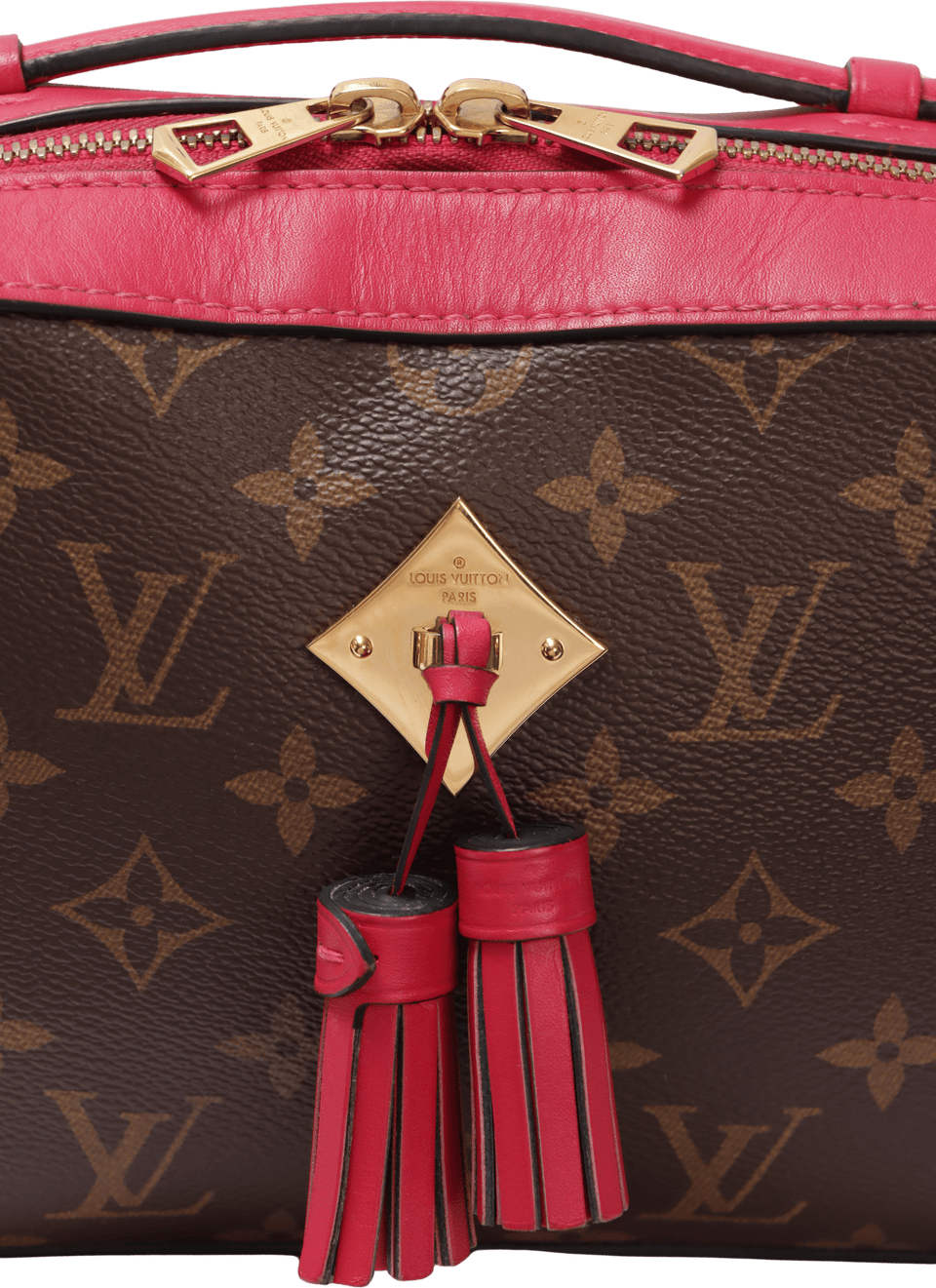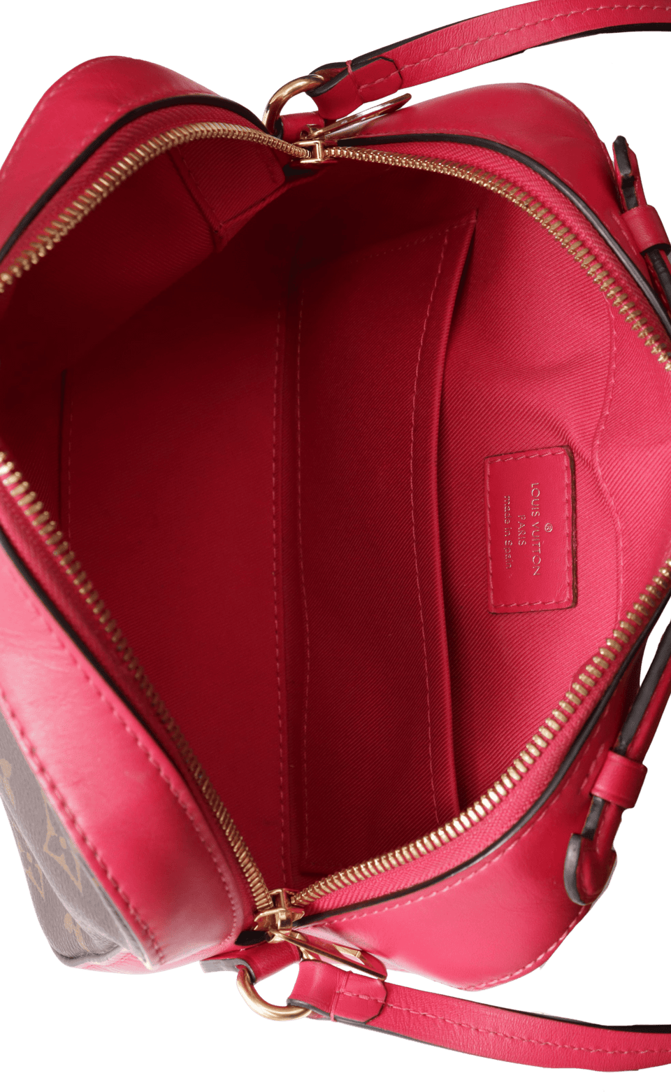 Descrição do Material: Canvas Monogram marrom com detalhes em couro calfskin rosa