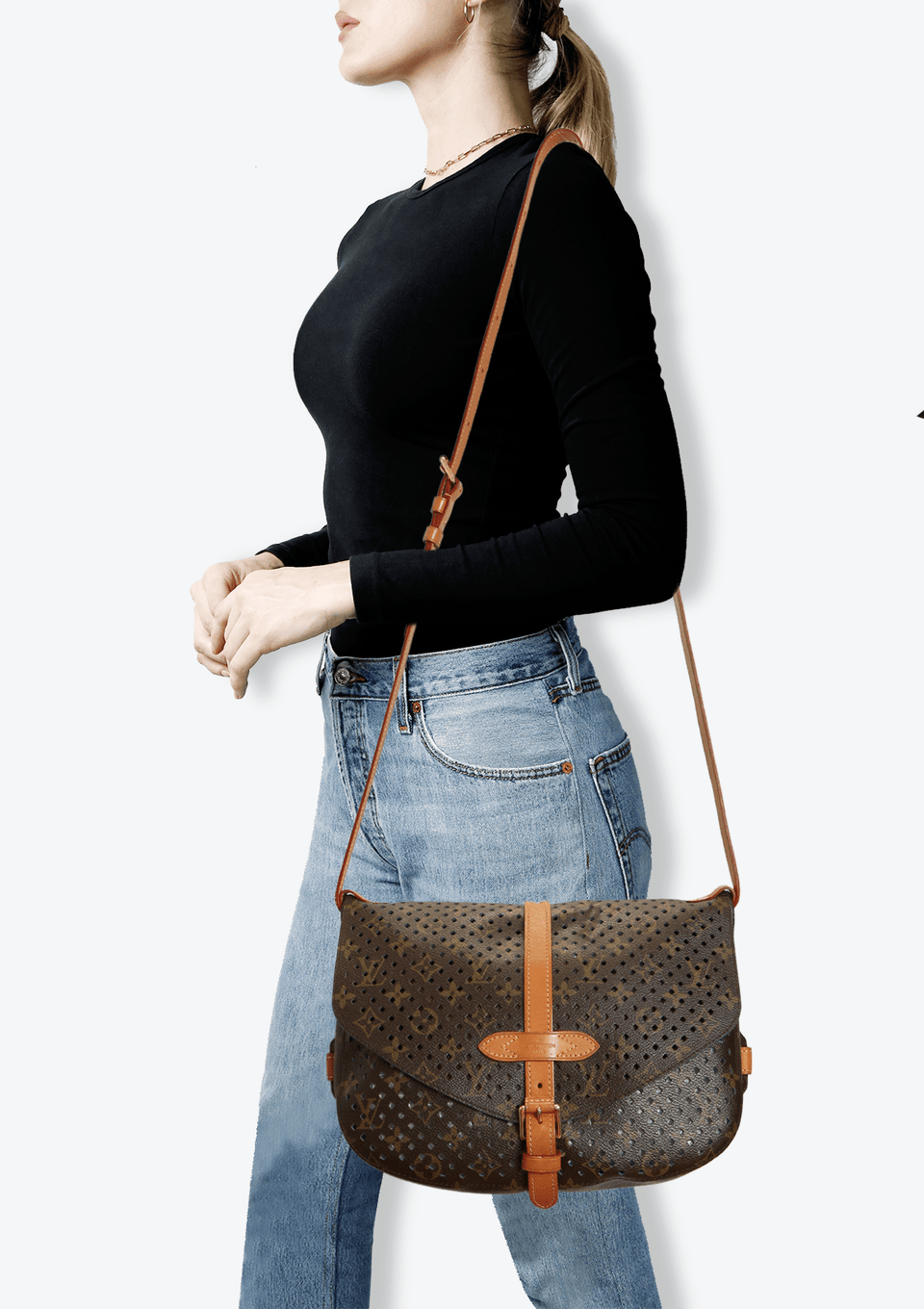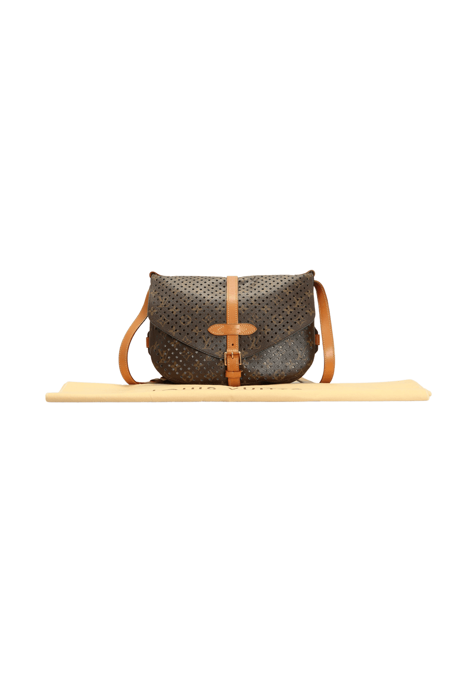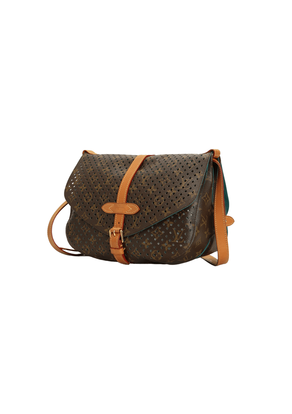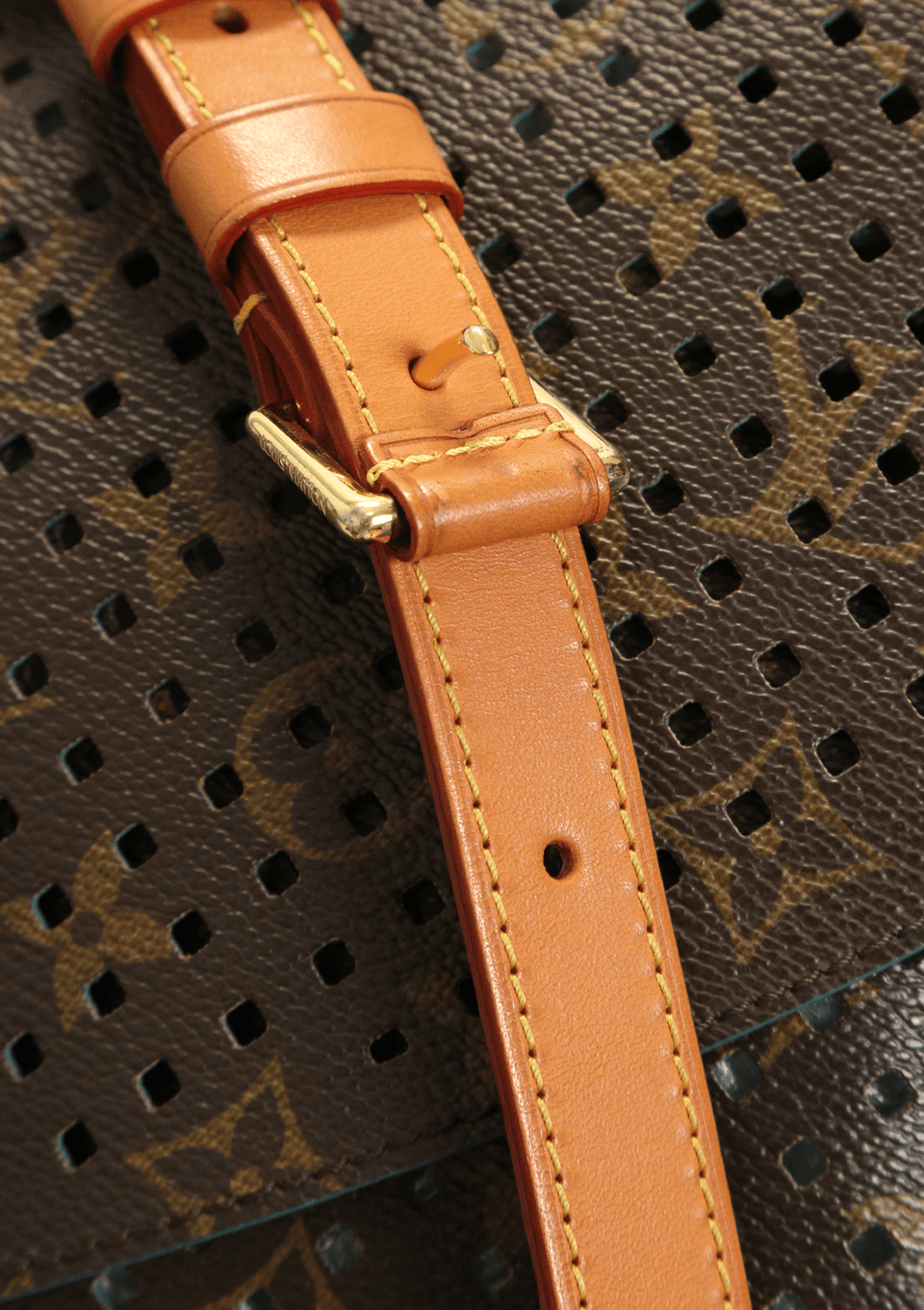 - Canvas Monogram perfurado e couro Vachetta;