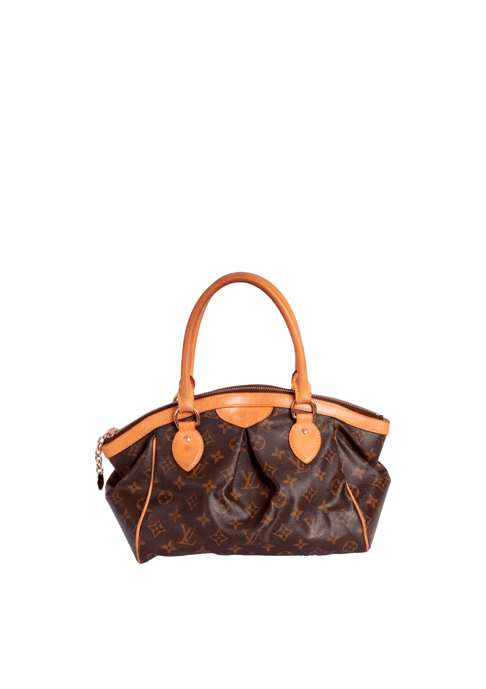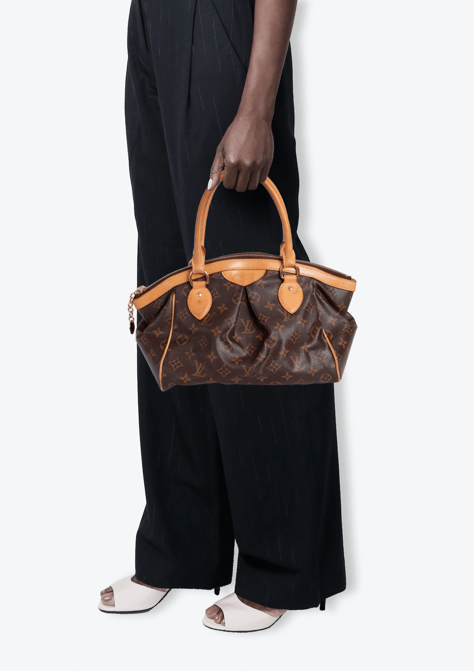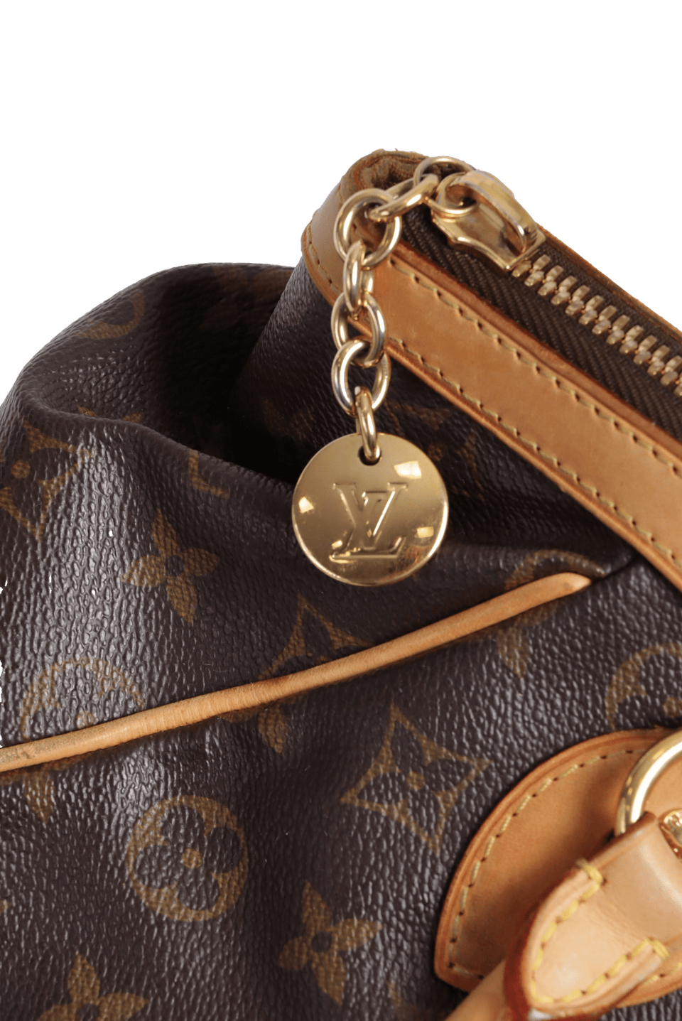 - Canvas Monogram marrom e detalhes em couro vachetta;
