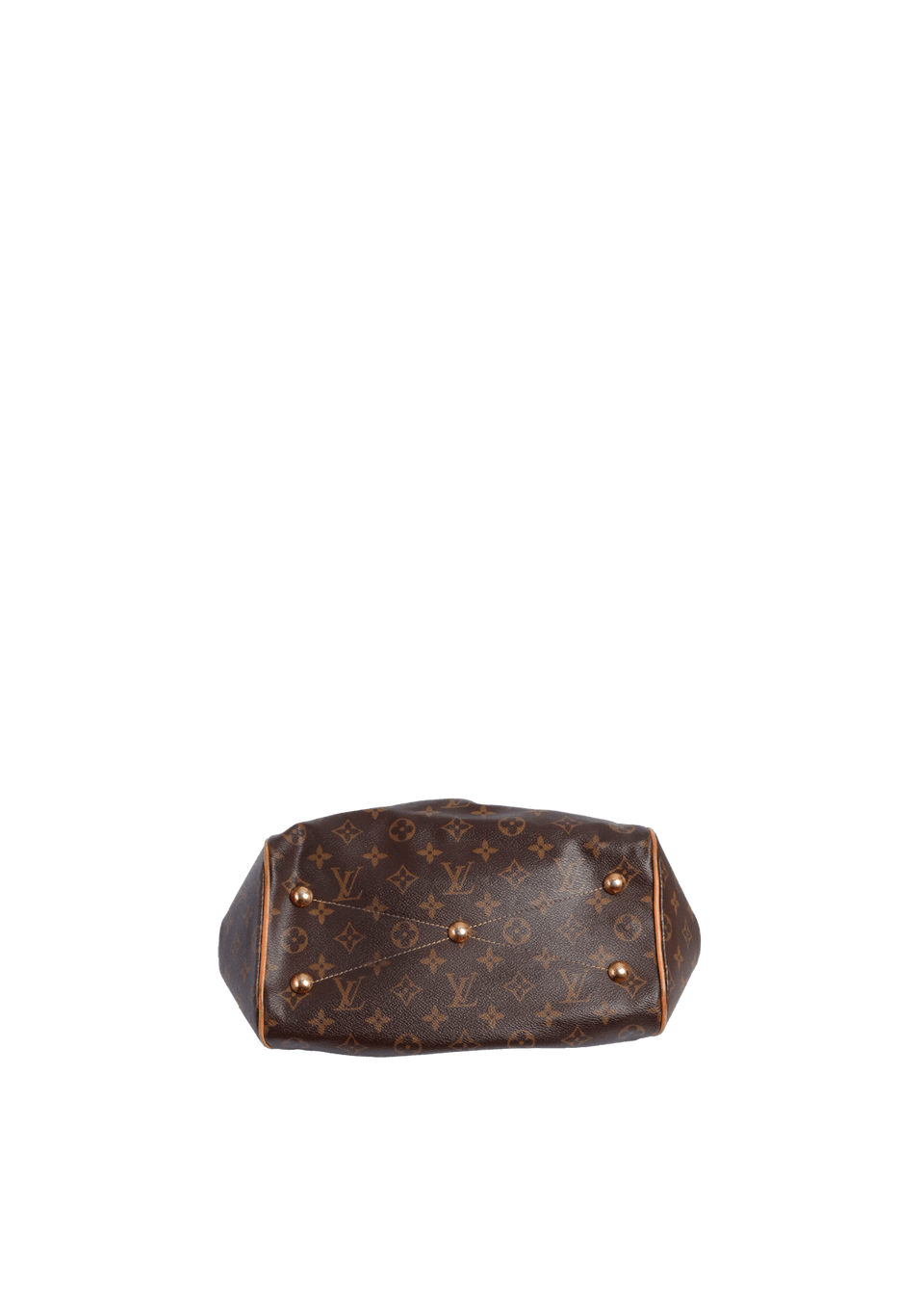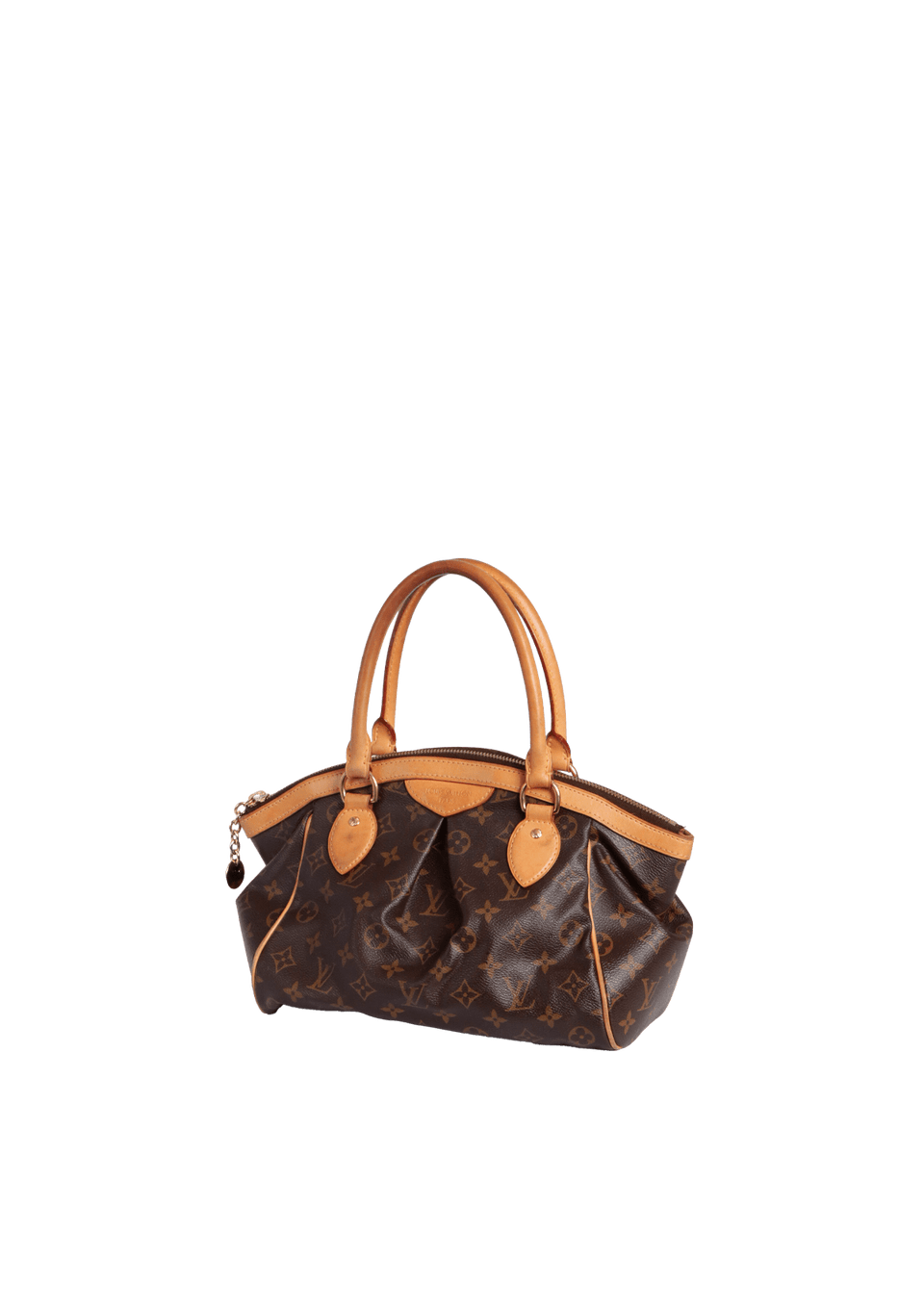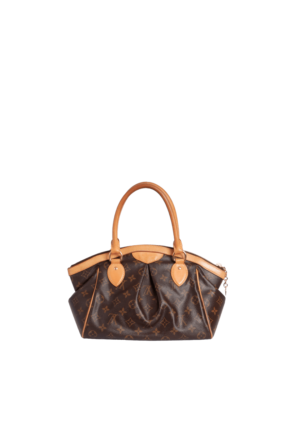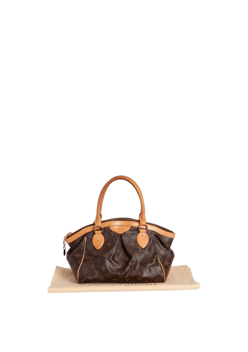 - Canvas Monogram marrom e detalhes em couro vachetta;