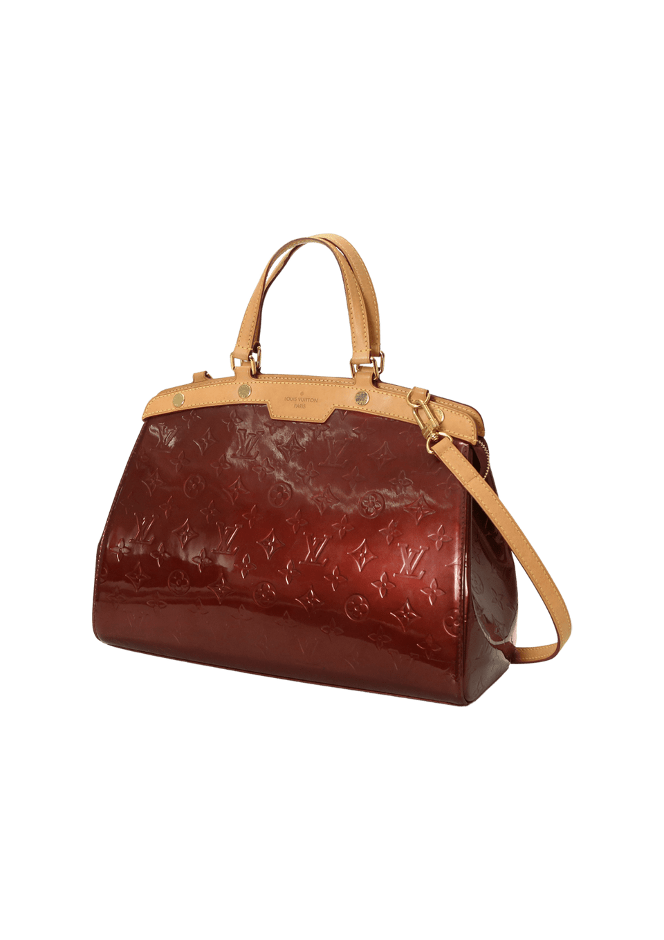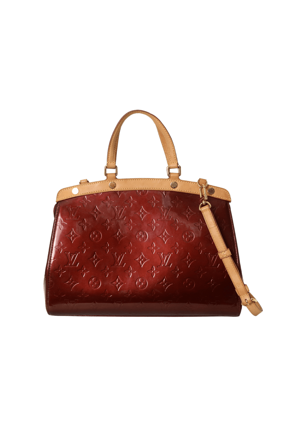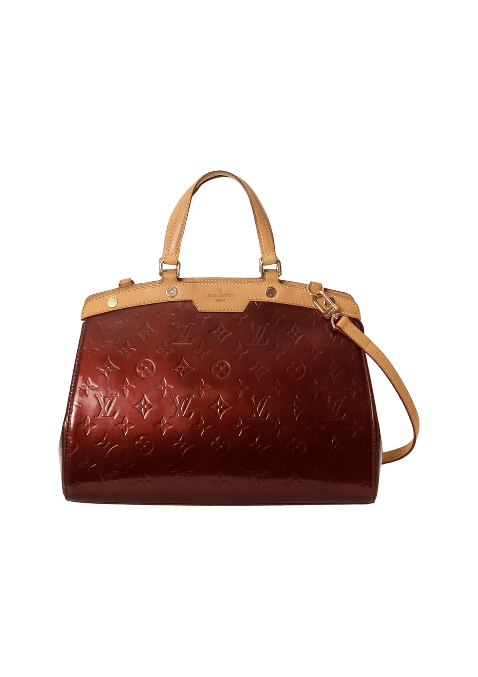 Condição: Muito Bom, com aparência de seminovo. Apresenta marcas de uso nas alças de mão e alça de ombro, manchas no couro externo, desgaste nas laterais externas, desgastes nos quatros cantos da base, arranhões no verniz frente e costas, ferragens arranhadas.
