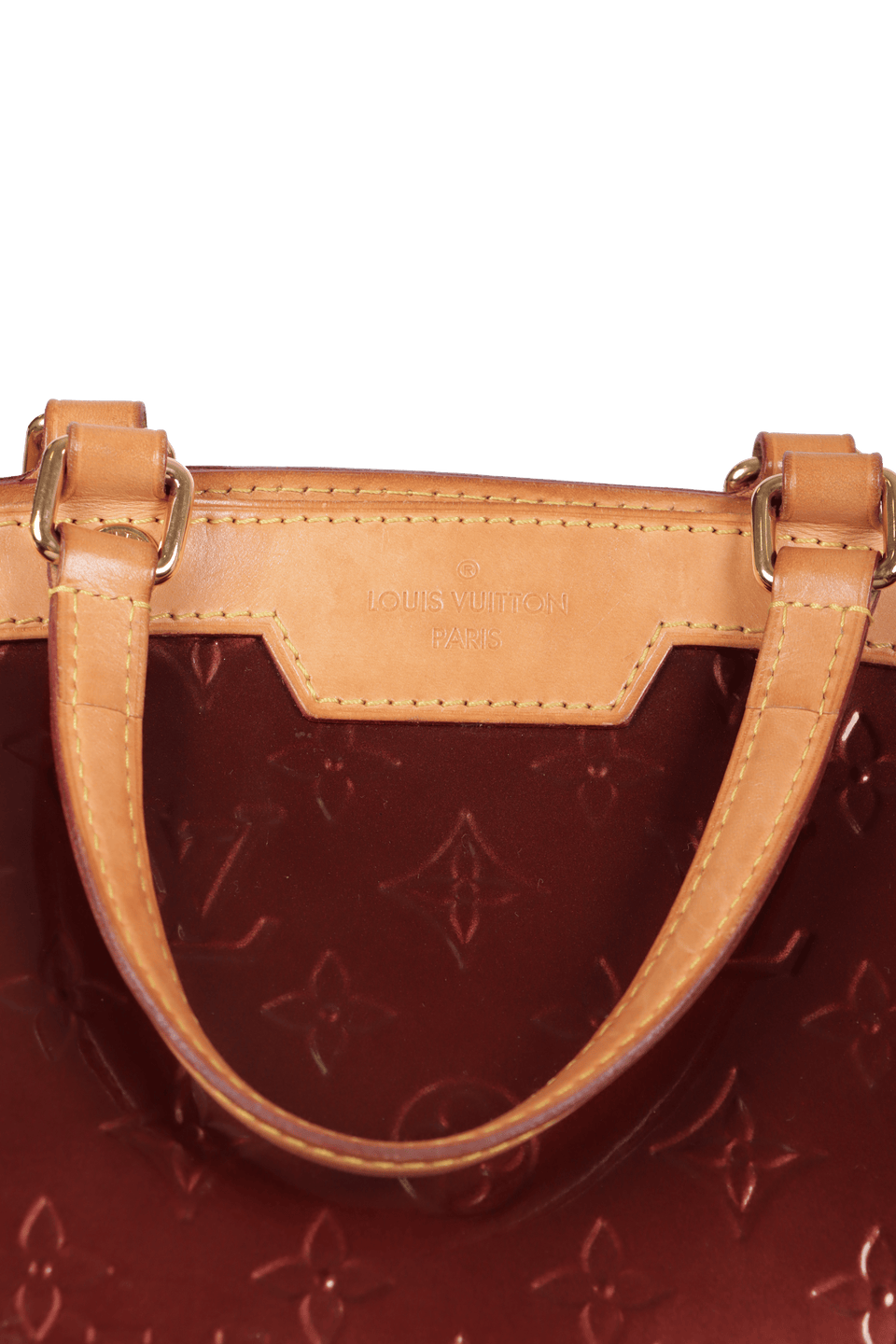 Descrição do Material: Couro calfskin bordô com acabamento Monogram Vernis e detalhes em couro vachetta