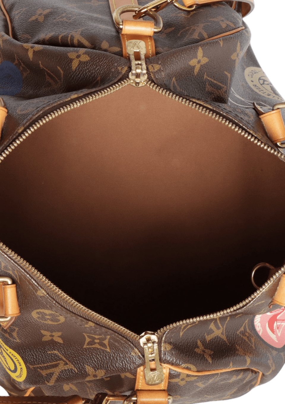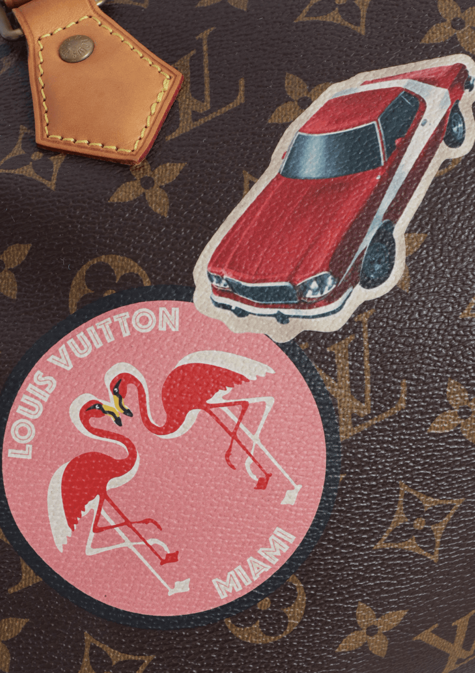 - Canvas Monogram marrom com stickers coloridos e couro vachetta;