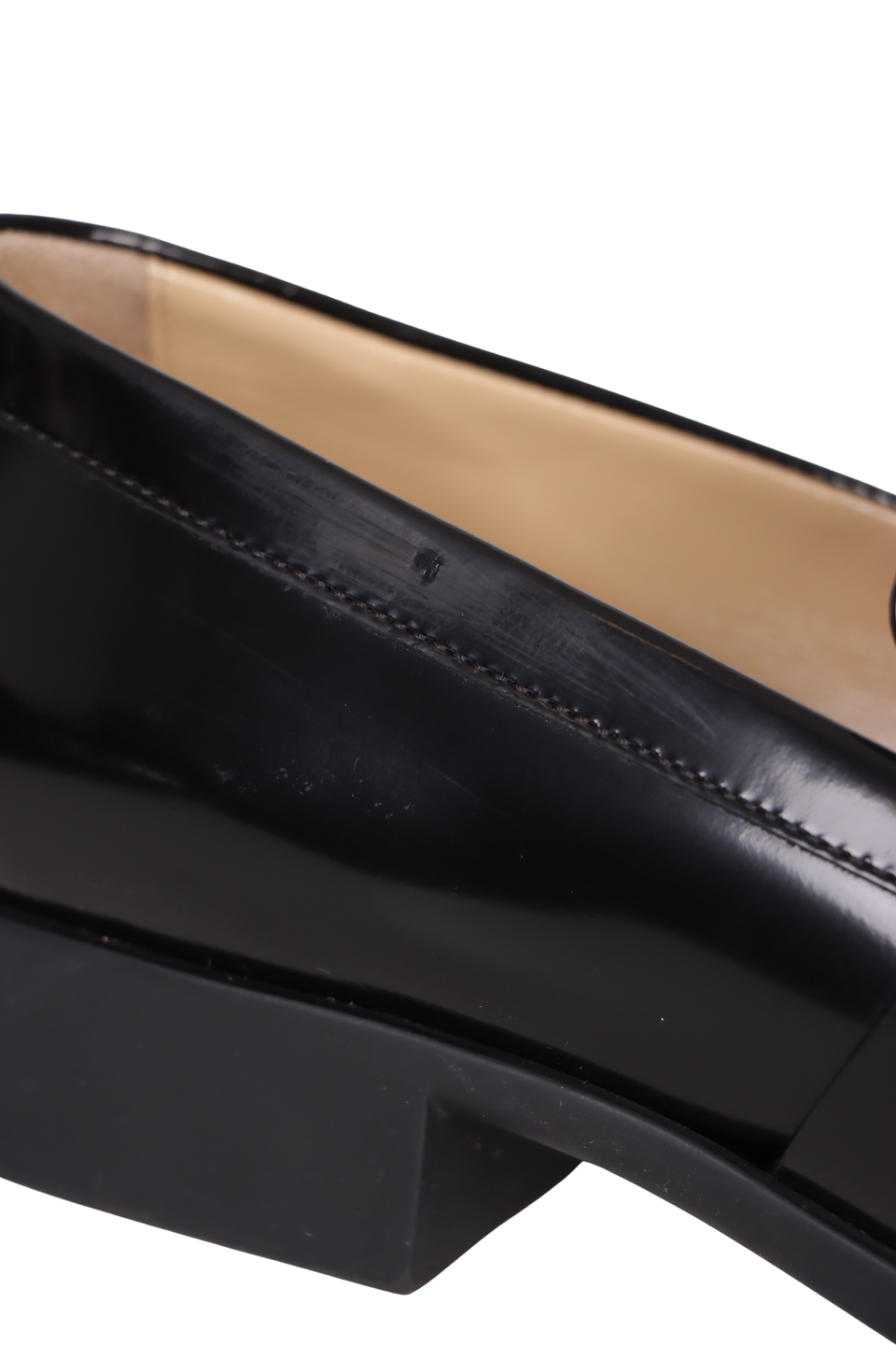 Muito bom, com aparência de seminovo. Apresenta levíssimas marcas e manchas de uso pelo couro, especialmente nas partes frontais e laterais superiores, mínimas marcas de uso e oxidações pelas ferragens, levíssimas marcas de uso e desgastes pelo couro nas partes internas e solas minimamente usadas.