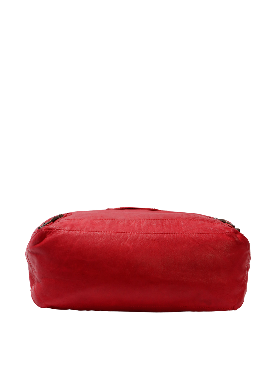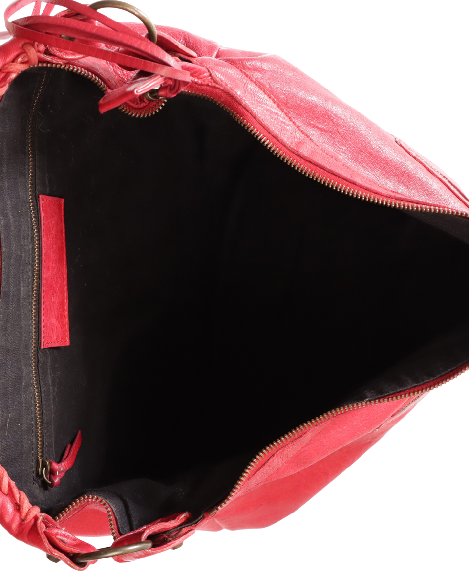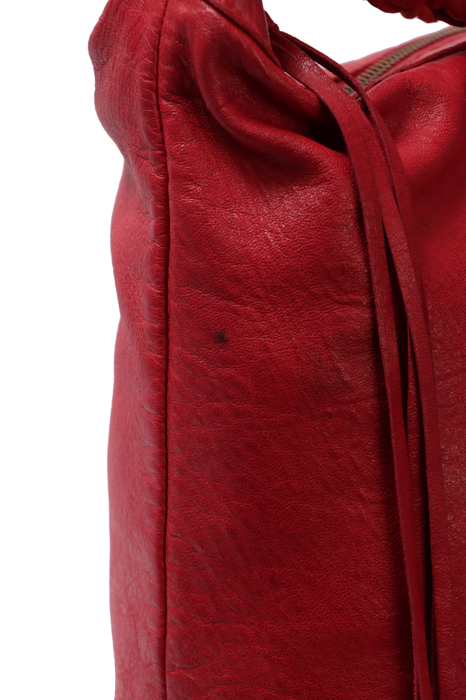 Bom, com aparência de usado. Apresenta leves manchas escurecidas pelo couro, especialmente na parte frontal superior, lateral esquerda e nos cantos da base, pequenos desgastes pelas extremidades, leves descolorações e marcas de uso pelas ferragens, pequenas fissuras e aberturas pelas selagens, principalmente da alça, couro levemente ressecado e leves manchas esbranquiçadas pelo forro.