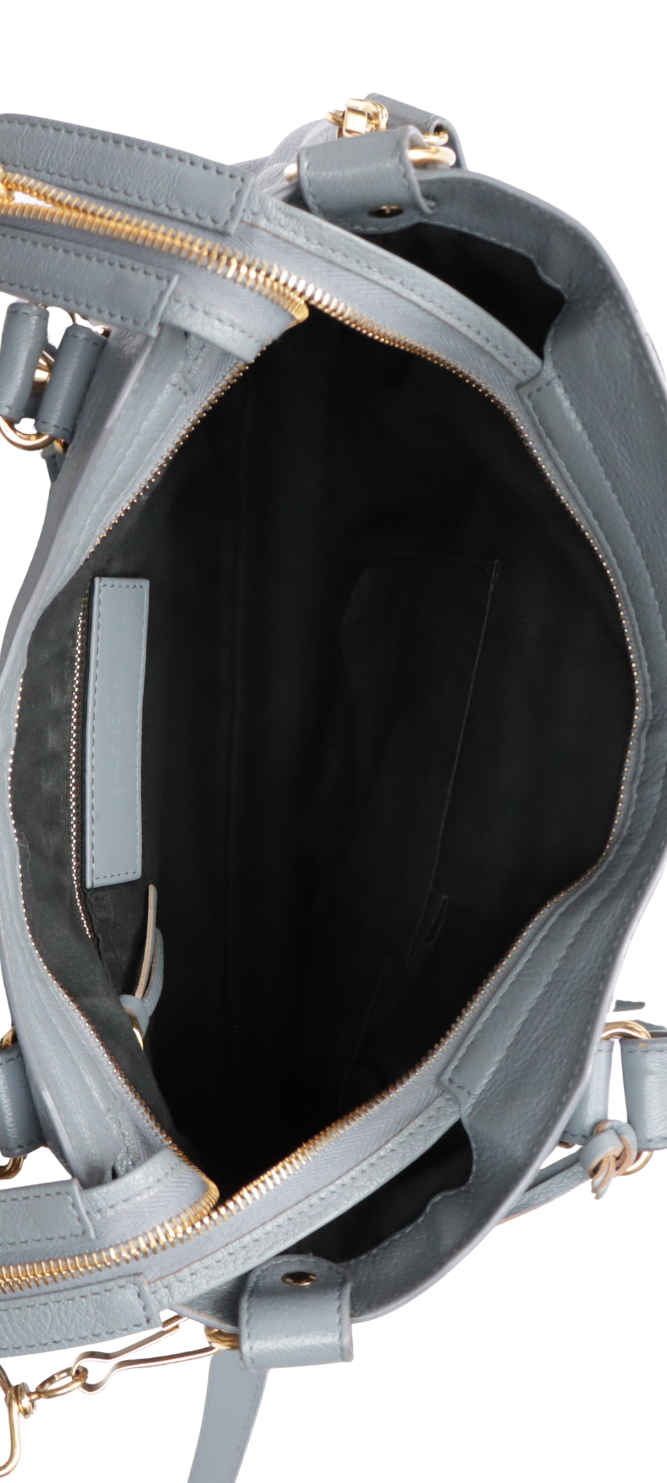 Muito bom, com aparência de seminovo. Apresenta levíssimas deformações pela estrutura da peça, especialmente nas laterais frontais e nas laterais da base, perda da ferragem do acabamento da alça na parte posterior no lado direito, mínimos desgastes pelo couro, principalmente na parte superior frontal e na lateral esquerda entre a fivela, levíssimas fissuras e aberturas nas selagens das alças de mão e nos acabamentos laterais superiores, levíssimas marcas de uso e descolorações nas ferragens, mínimas manchas de uso e desgastes pelos tecidos dos acabamentos das alças e no forro.