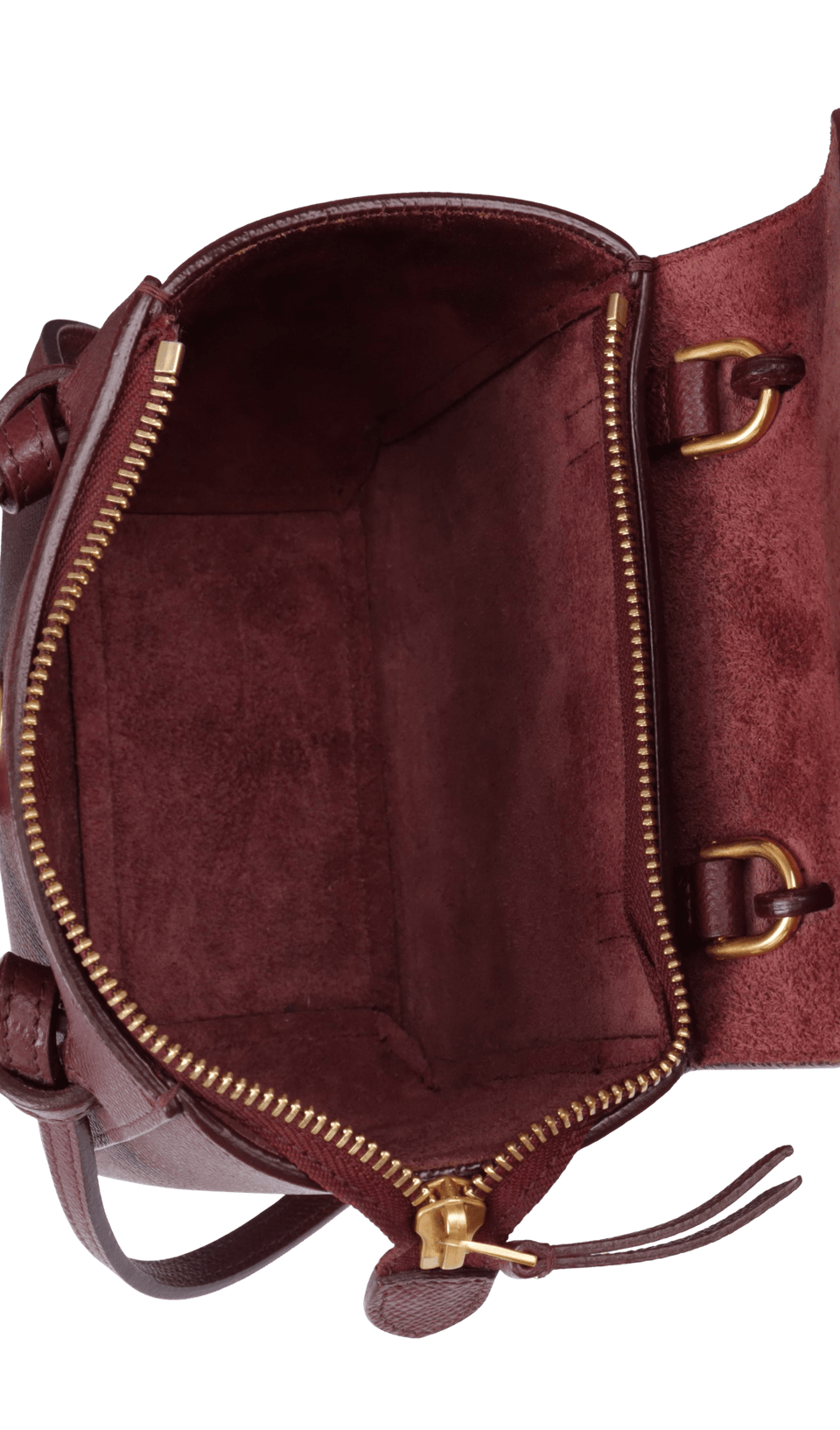 Muito bom, com aparência de seminovo. Apresenta levíssimos desgastes e manchas esbranquiçadas pelo couro, especialmente na parte frontal inferior e nos cantos da base, levíssimas marcas de uso e fissuras nas selagens, principalmente nos acabamentos laterais superiores, levíssimas marcas de uso e descolorações nas ferragens, especialmente no cursor e levíssimos desgastes e manchas escurecidas na parte interna, principalmente nos acabamentos superiores e da aba.