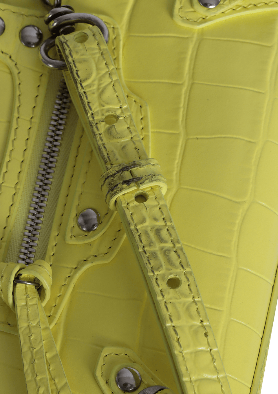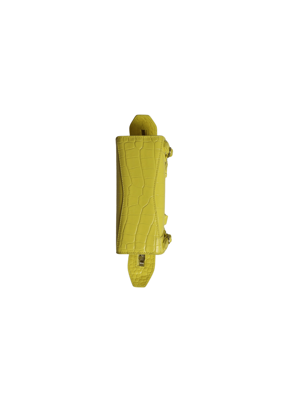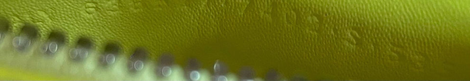 - Couro calfskin amarelo com acabamento Embossed;