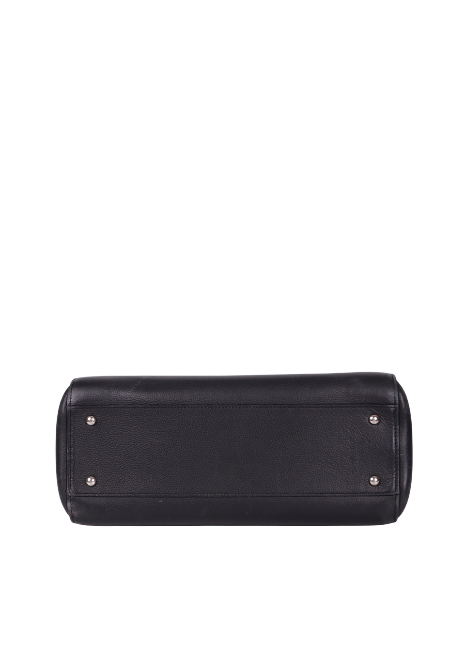 Regular. Apresenta severas marcas de uso e desgastes pelo couro, especialmente na parte inferior frontal e nas extremidades, notáveis desgastes e marcas de uso pelas selagens, principalmente no acabamento superior e na tira de fechamento, couro consideravelmente ressecado, notáveis marcas de uso e descolorações pelas ferragens e severas manchas de uso e esbranquiçadas pelo forro.
