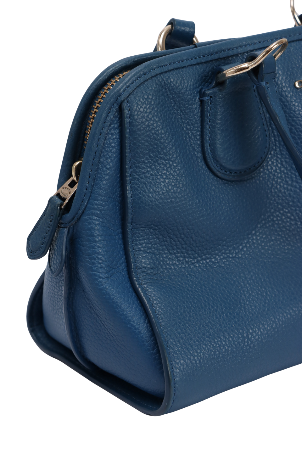 Bom, com aparência de usado. Apresenta leve deformaçāo na estrutura da peça, especialmente na parte frontal do lado esquerdo, pequenos desgastes pelo couro nas extremidades, leves marcas de uso pelas ferragens e personalizaçāo de iniciais em baixo relevo na tag de couro da marca.