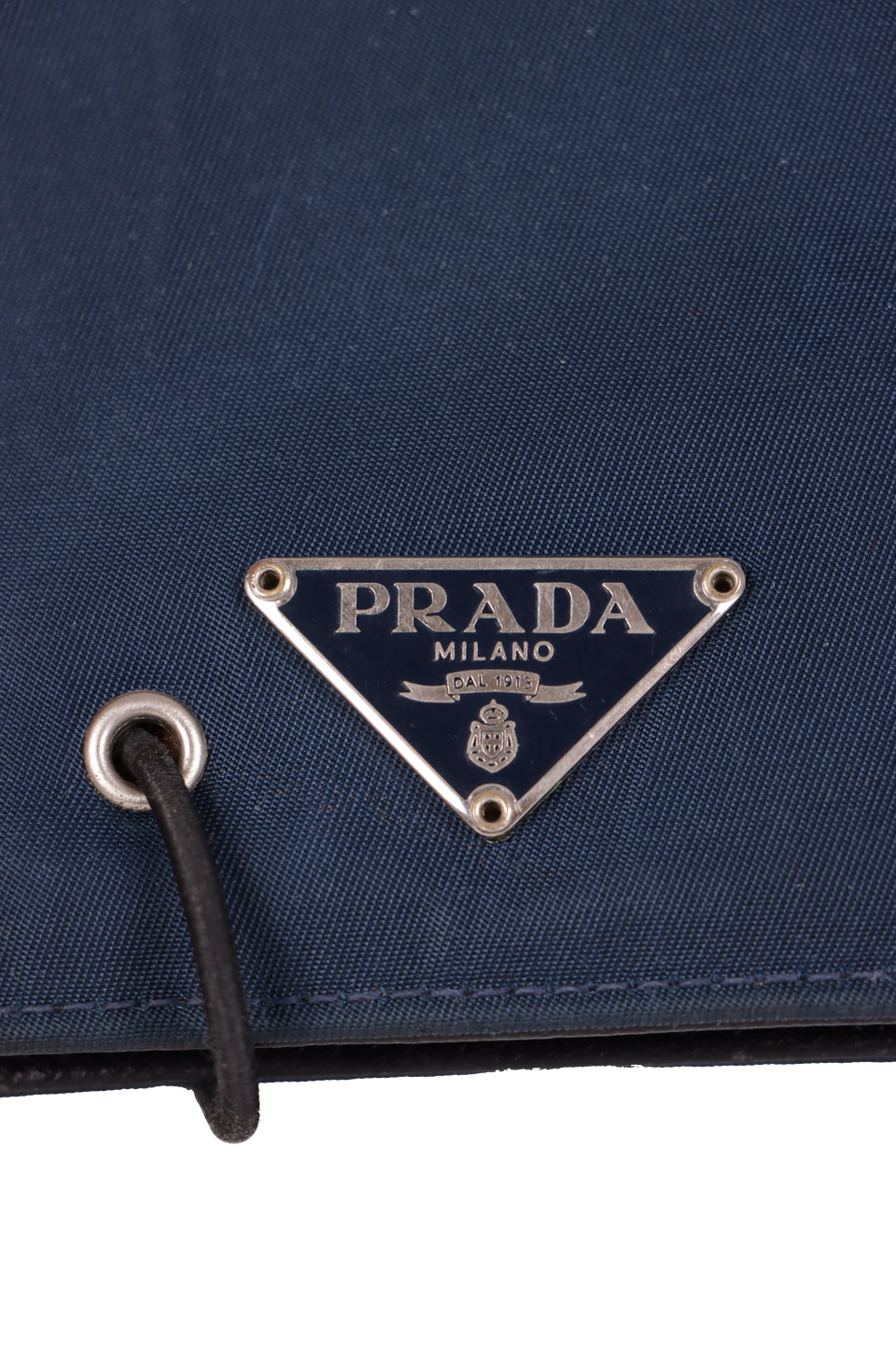 Descrição do Material: Nylon azul com detalhes em couro calfskin preto