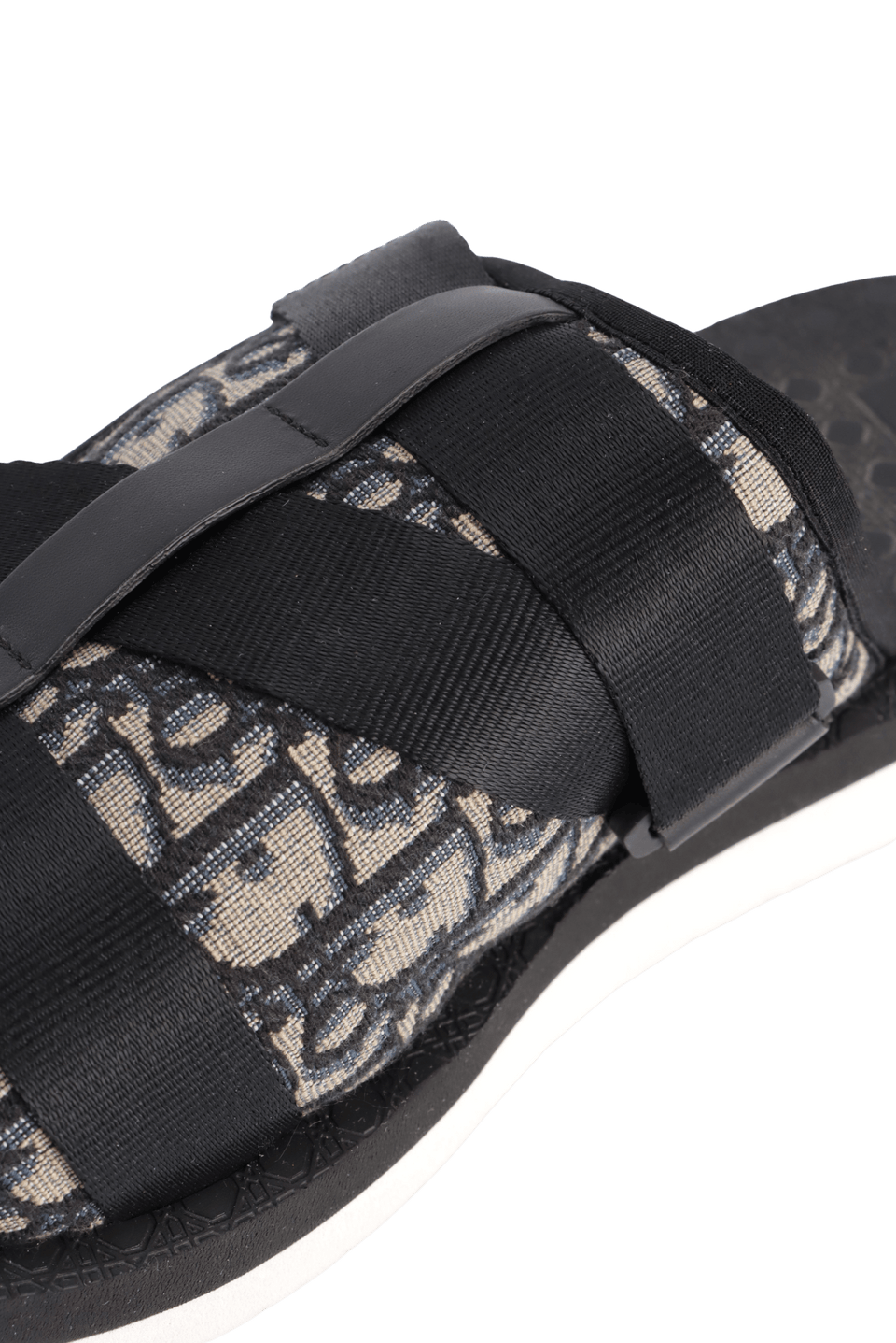 Descrição do Material: Borracha preta e prata com detalhes em canvas Oblique azul e bege, couro calfskin preto e nylon preto