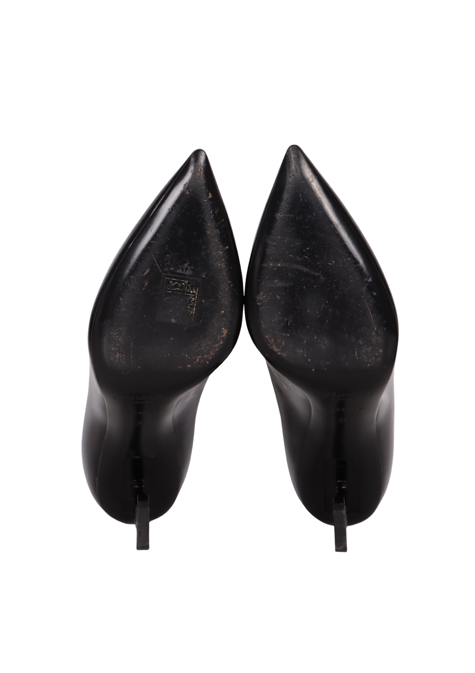 Bom, com aparência de usado. Apresenta leves manchas e marcas de uso pelo couro, especialmente na parte superior frontal do pé esquerdo, na parte de trás da lateral direita do pé direito, pequenas marcas de uso nas ferragens dos saltos, sola levemente usada e pequenas manchas e marcas de uso pelo couro interno.