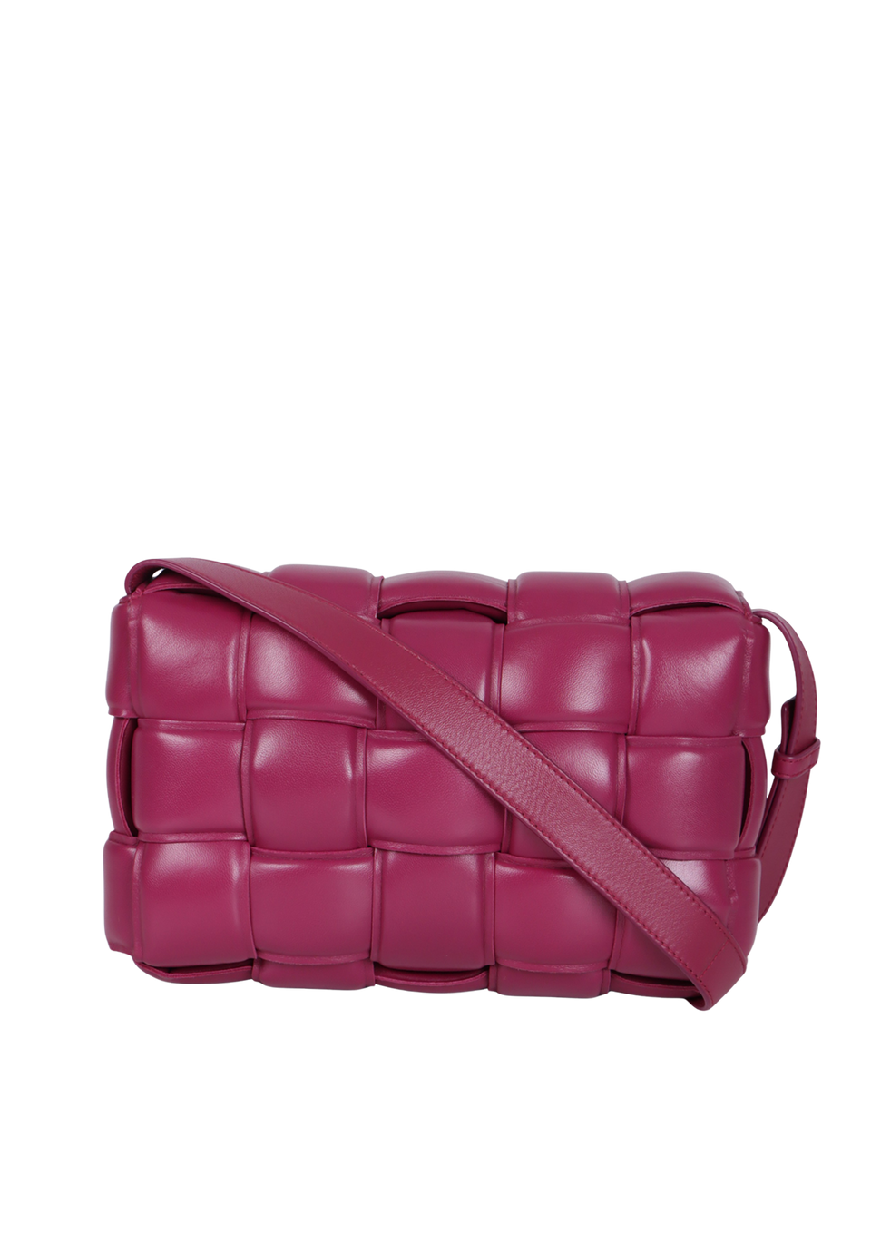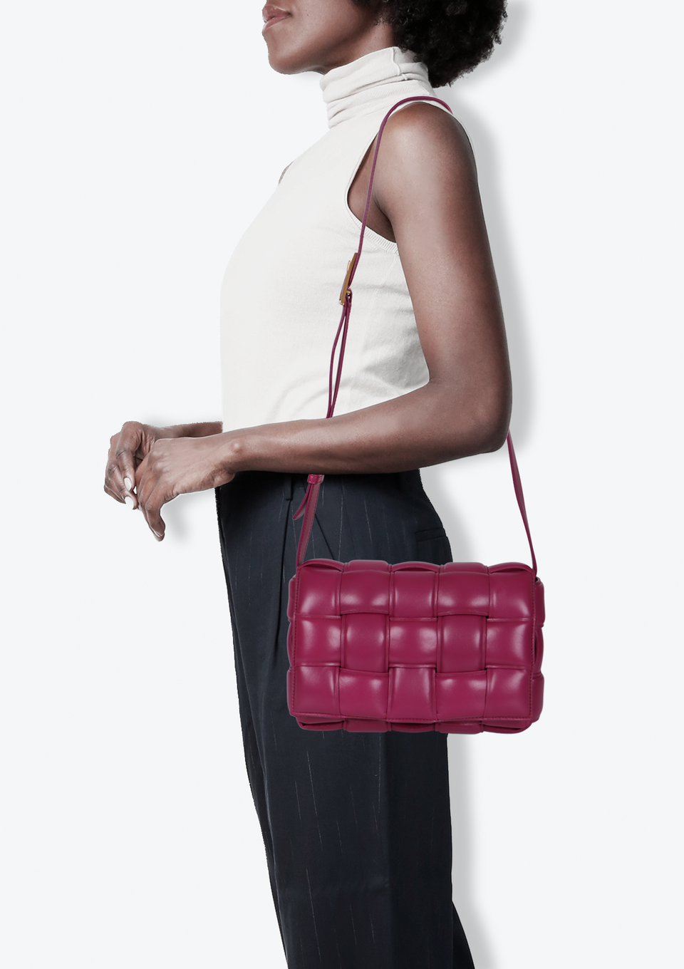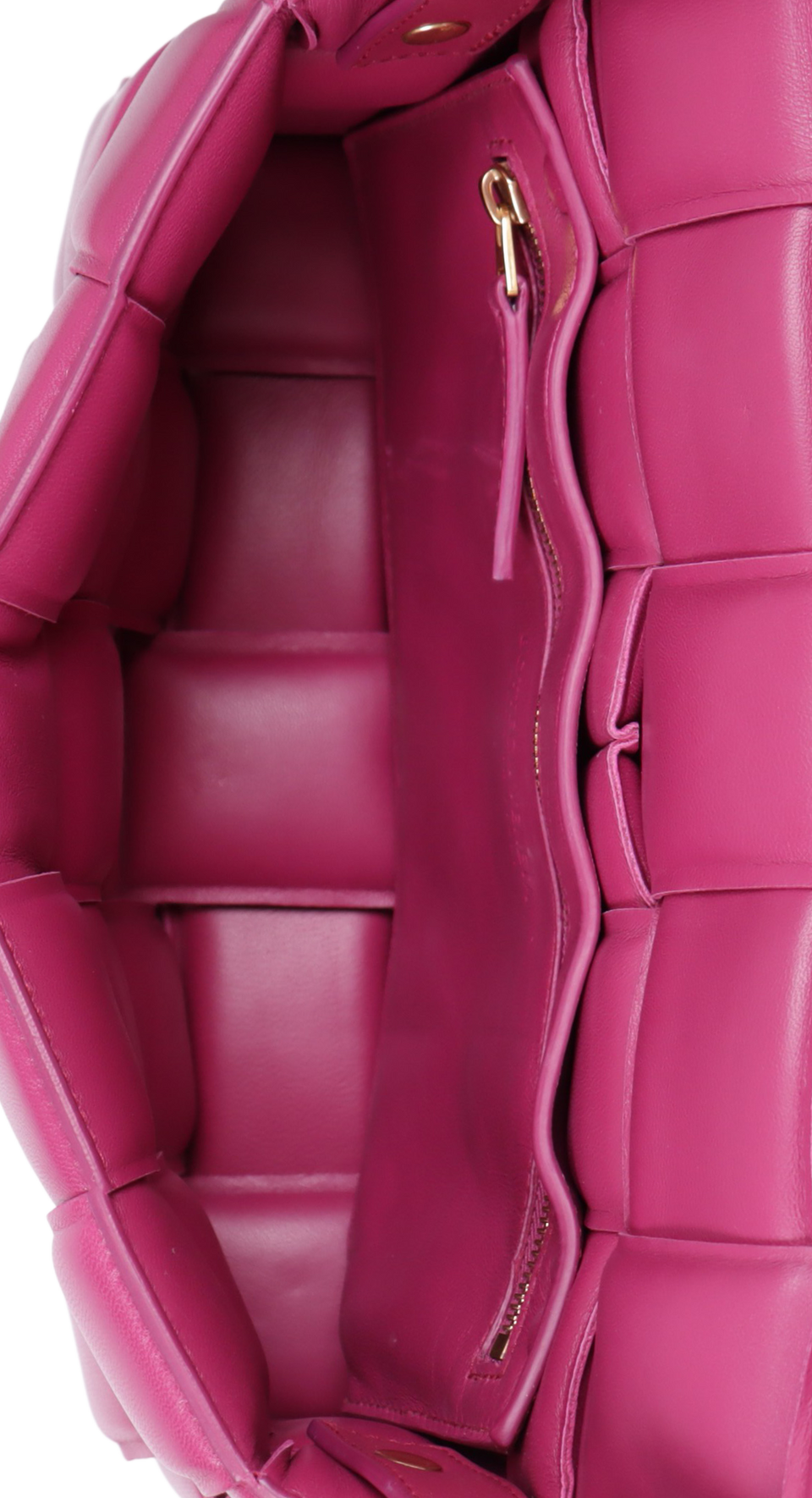 Descrição do Material: Couro calfskin rosa com acabamento Intreccio