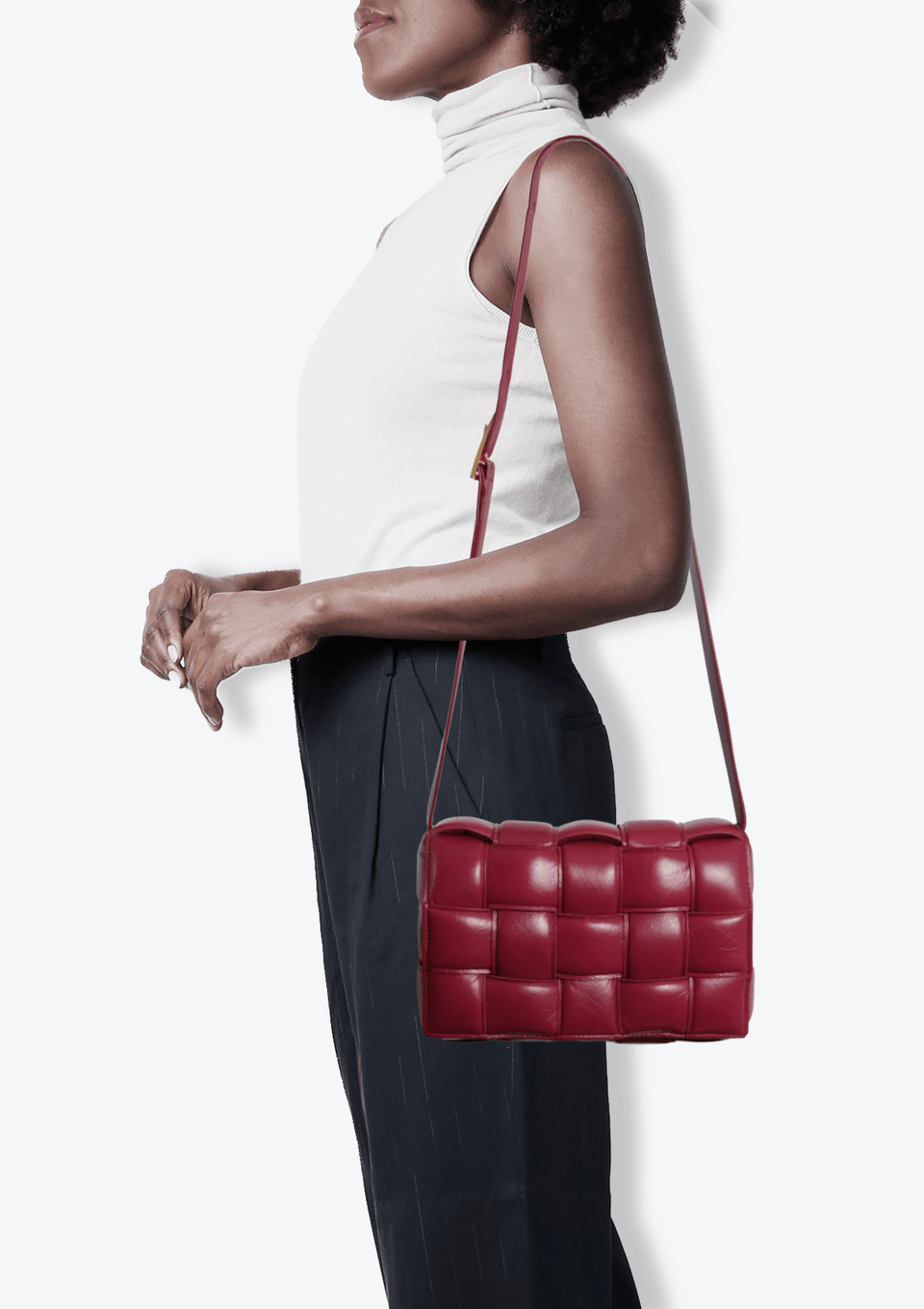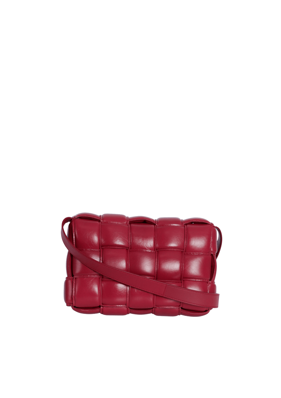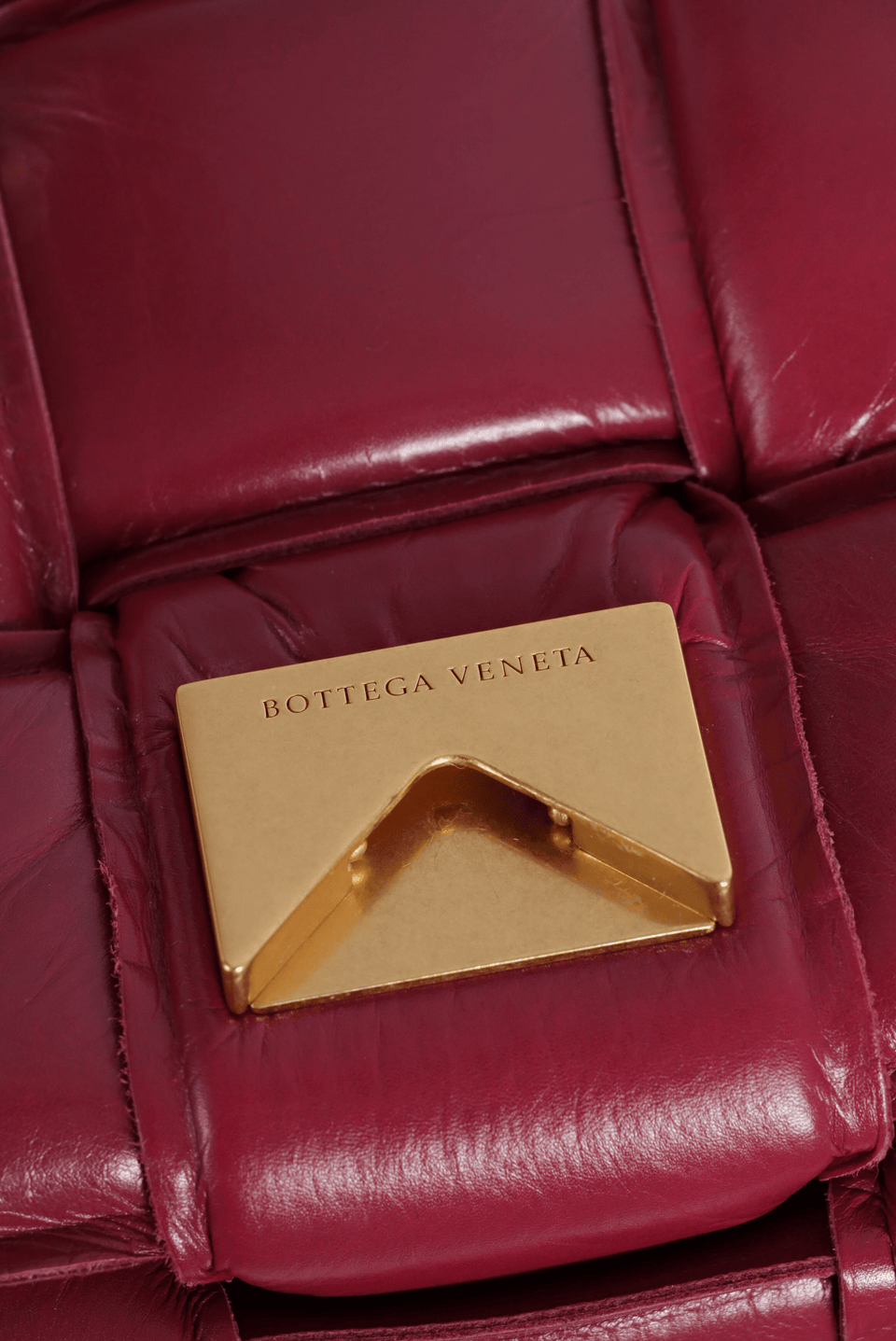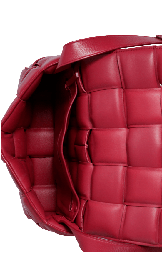 - Couro nappa bordô com acabamento Maxi Intrecciato;