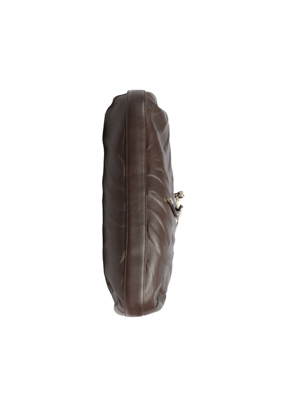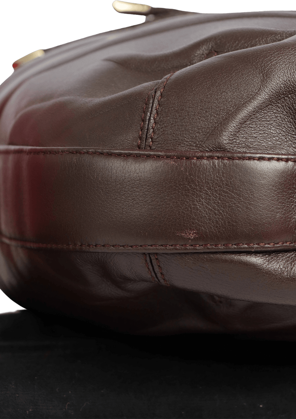 Condição: Muito bom, com aparência de seminovo. Apresenta mínimos desgastes, fissuras (dobras) e sinais de uso pelo couro externo, e mínimas manchas e sinais de uso nas ferragens. Caixa da marca apresenta desgastes e rasgos.