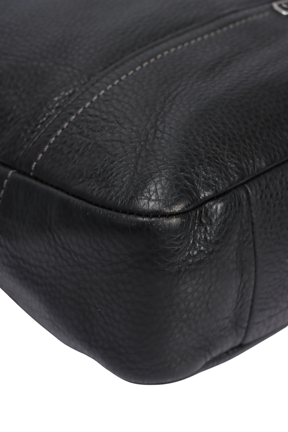 Regular. Apresenta severos desgastes pelo couro, especialmente nos cantos da base, couro consideravelmente desbotado devido ao ressecamento do mesmo, notável deformaçāo na estrutura da peça, principalmente nas laterais, consideráveis marcas de uso e descolorações nas ferragens, notáveis fissuras e aberturas nas selagens dos acabamentos laterais superiores e perceptíveis manchas de uso pelo forro.