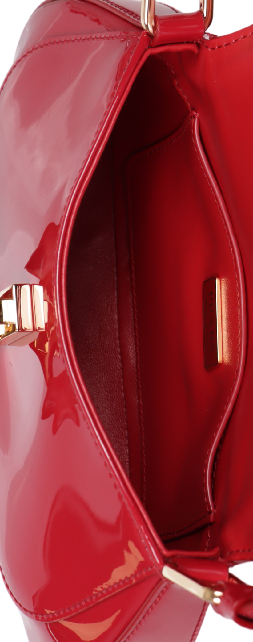 Descrição do Material: Couro calfskin vermelho com acabamento em verniz