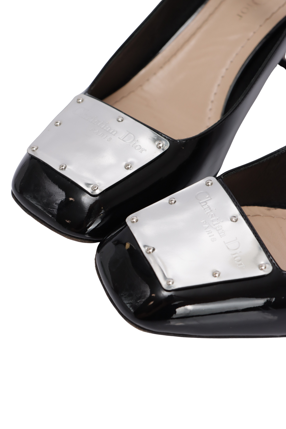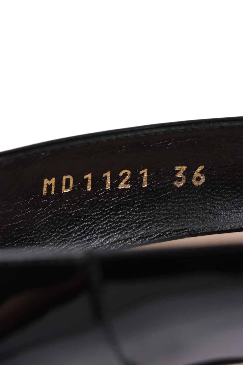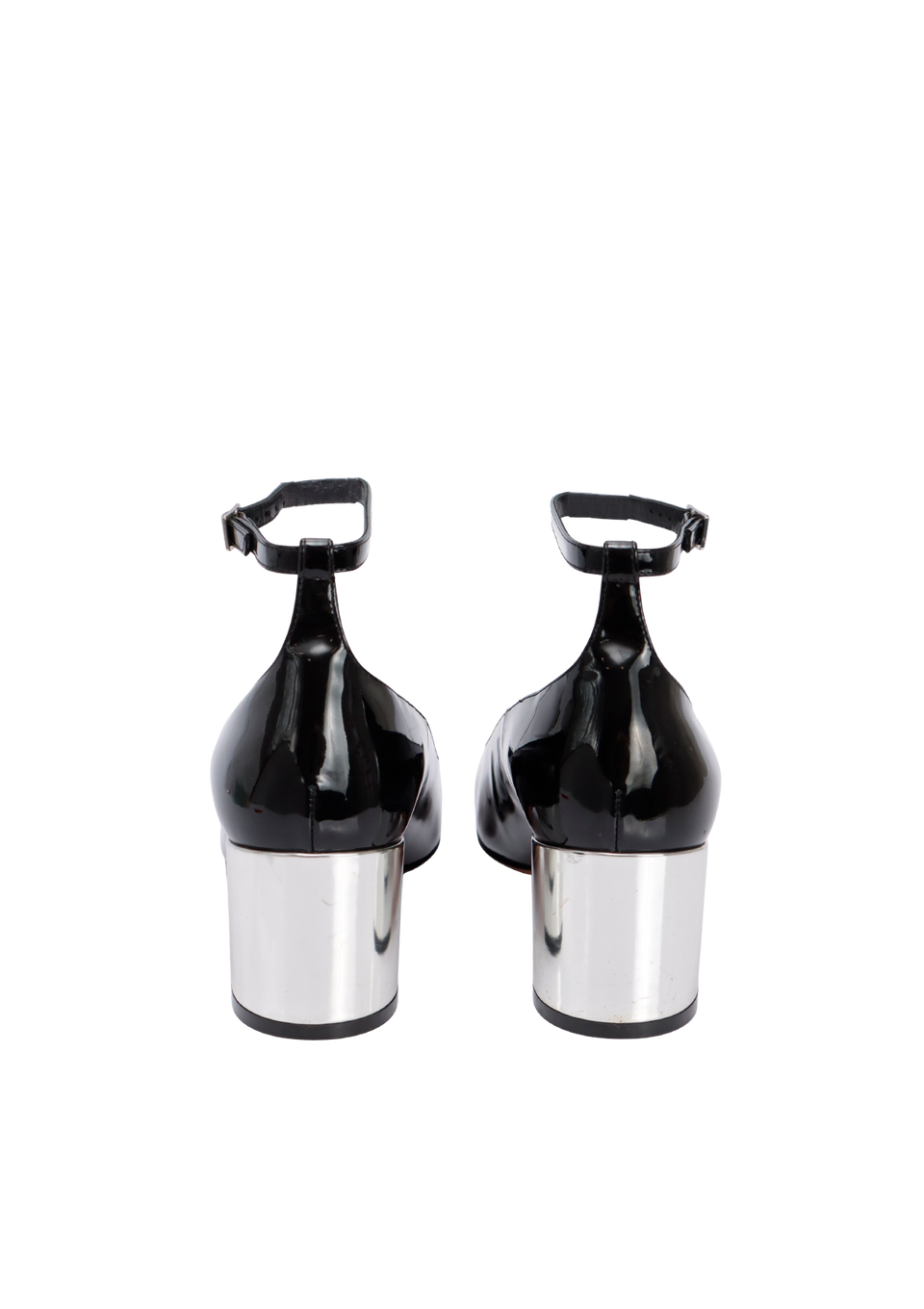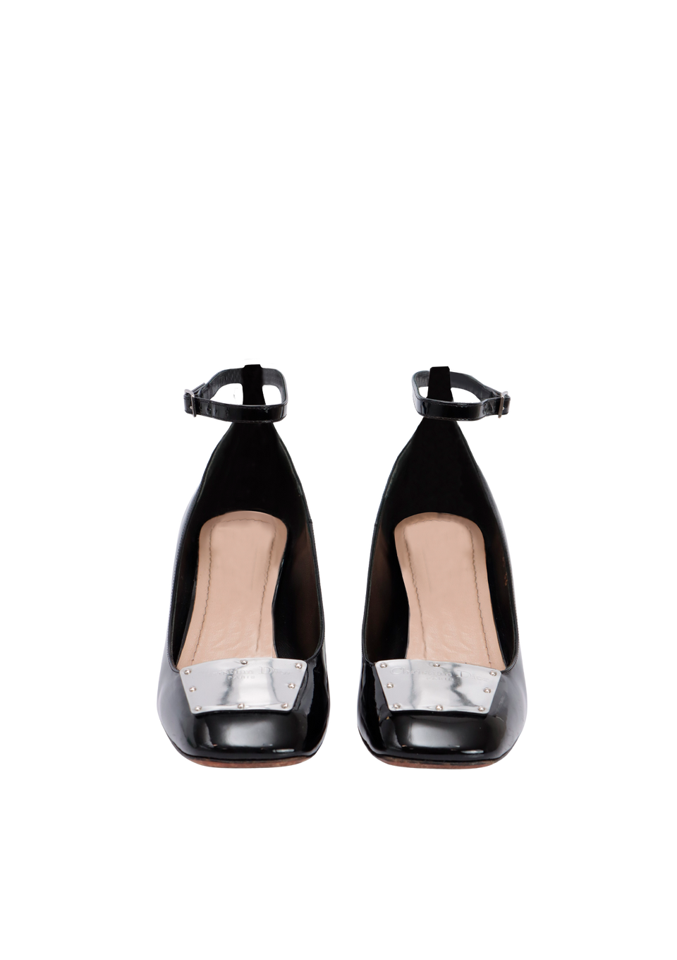 Descrição do Material: Couro calfskin preto revestido por verniz e detalhes prateados