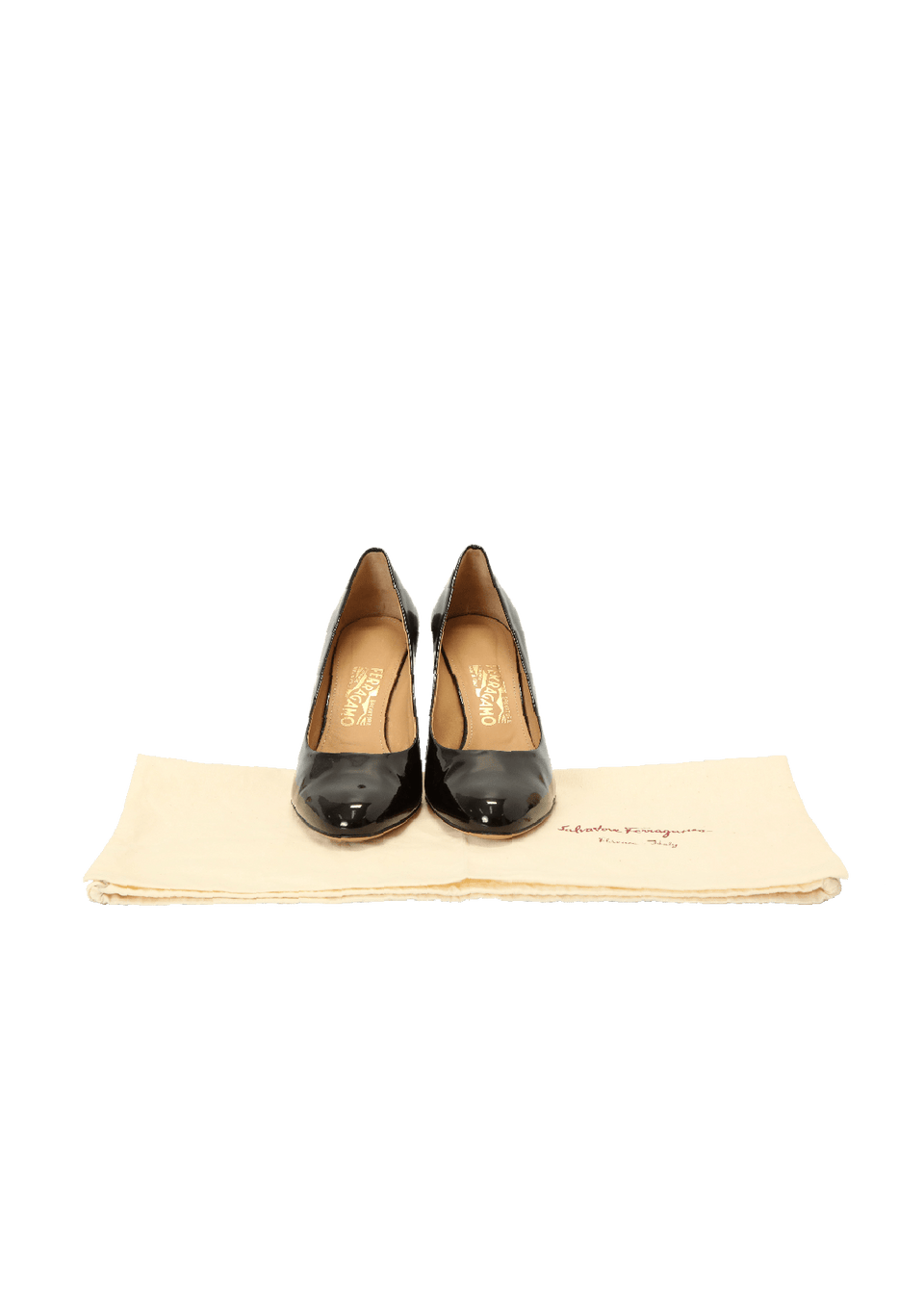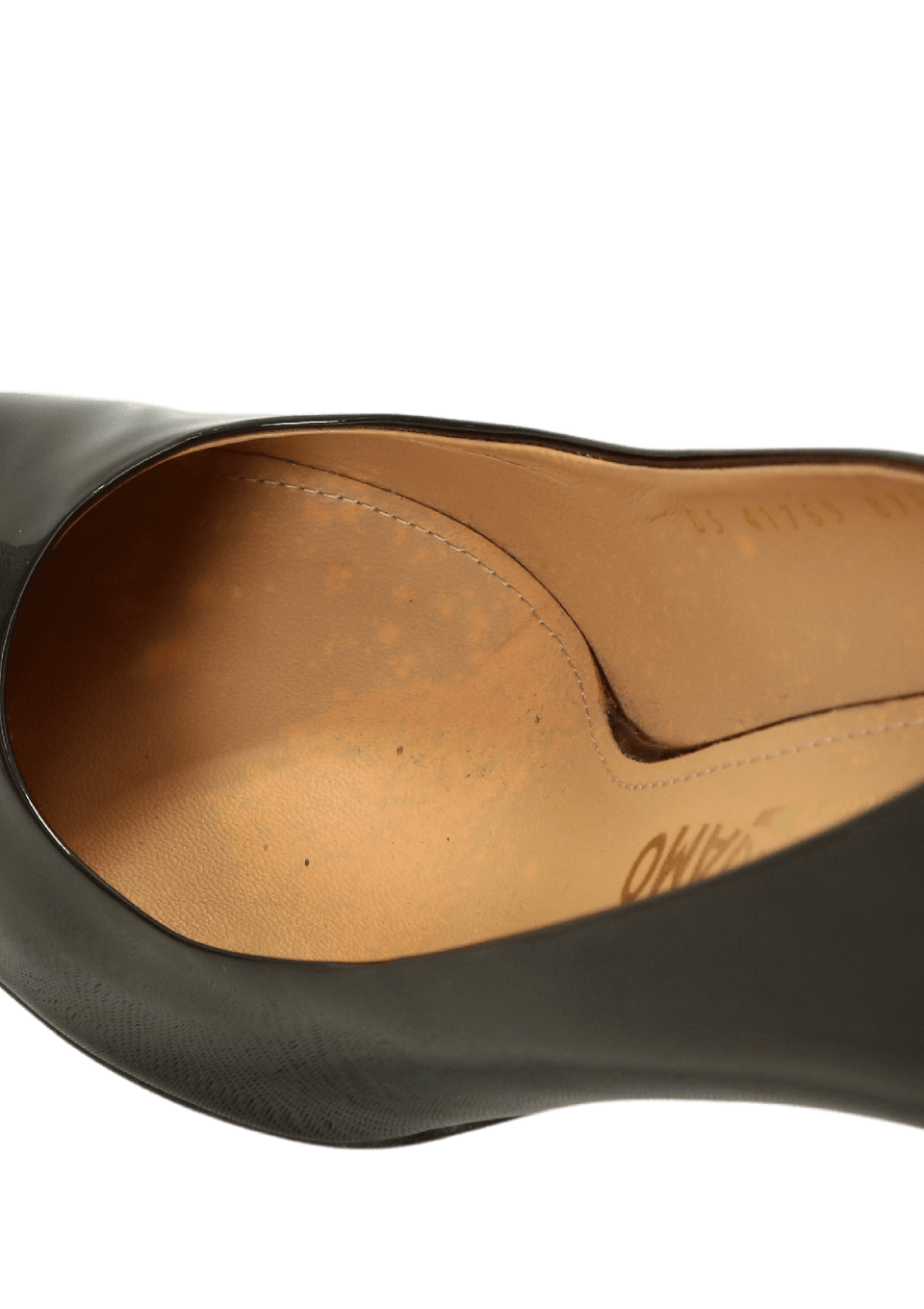 Condição: Muito Bom, com aparência de seminovo. Sola usada, Salto usado, Palmilha usada com manchas, Parte externa leves marcas no verniz.